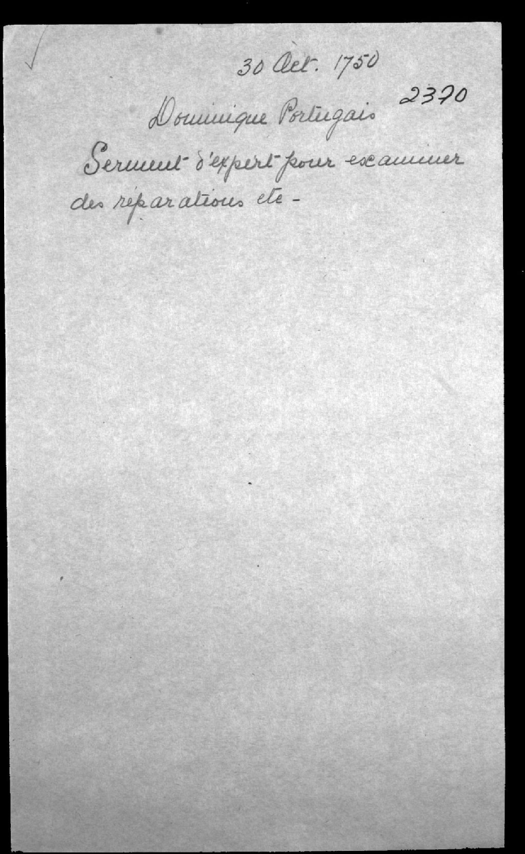 - Serment d'expert pour examiner des réparations sur une maison faites par Dominique Portugais (Dasylva dit Portugais), maître maçon, de Québec