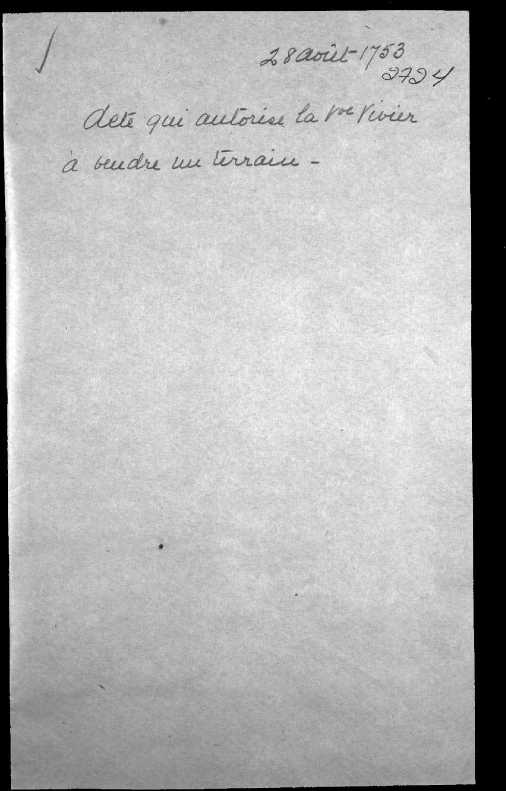 - Acte autorisant la vente d'un terrain par Marie-Catherine Dauphin, veuve de feu Pierre Vivier