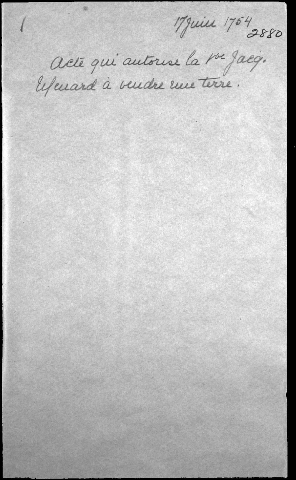 Acte, accordé à Louis Lambert, veuve de feu Jacques Ménard, maître maçon de Québec, qui autorise la vente d'une terre