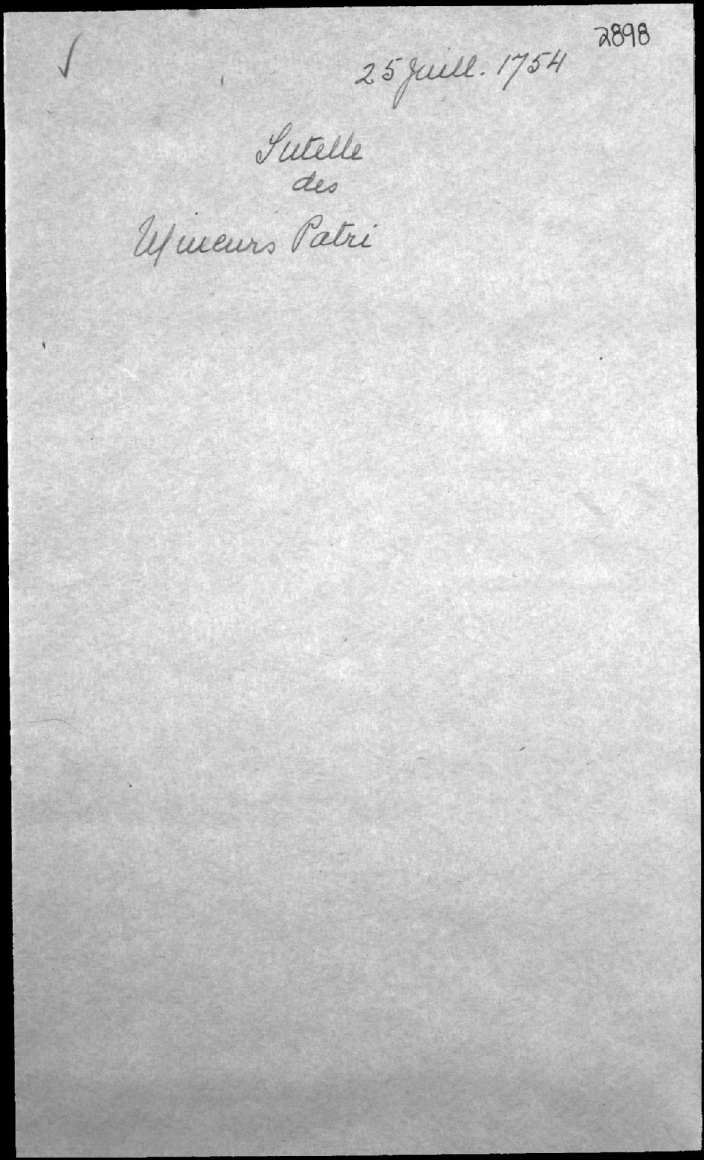 Tutelle aux mineurs de René Patri (Patry), habitant de Pointe-de-Lévis, et de feue Catherine Girard, 25 juillet 1754, Archives nationales à Québec, Fonds Cour supérieure. District judiciaire de Québec. Tutelles et curatelles, (03Q,CC301,S1,D2898).