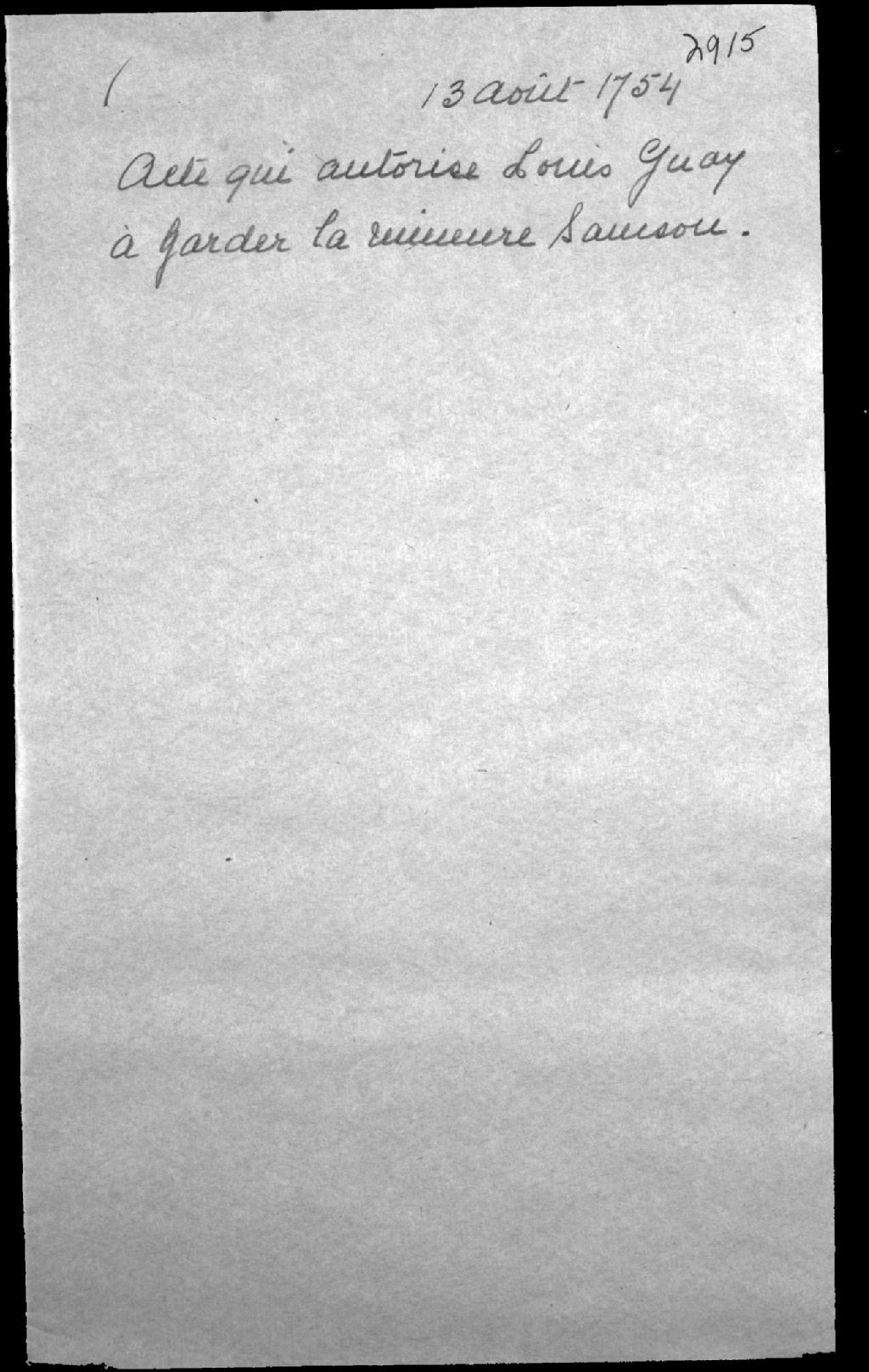 - Acte qui autorise la mineure Samson à rester sous la garde de Louis Guay, habitant de Pointe-de-Lévis