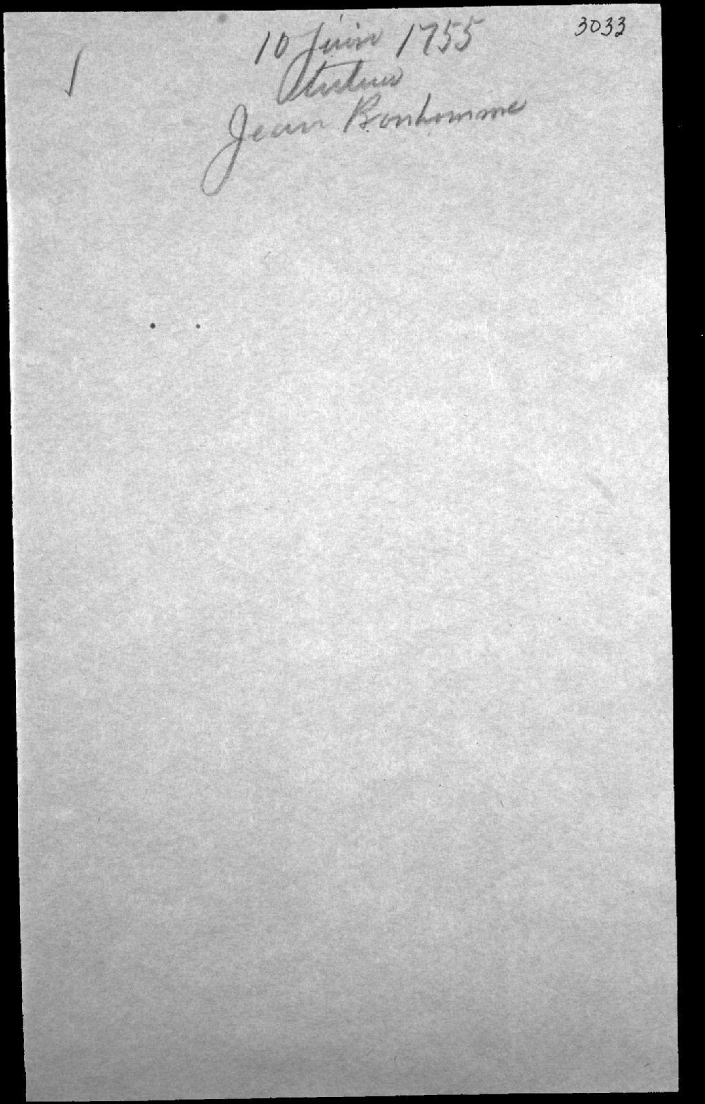 Tutelle à Jean, fils mineur de feu Ignace Bonhomme et de Marie-Madeleine Moreau, 10 juin 1755, Archives nationales à Québec, Fonds Cour supérieure. District judiciaire de Québec. Tutelles et curatelles, (03Q,CC301,S1,D3033).