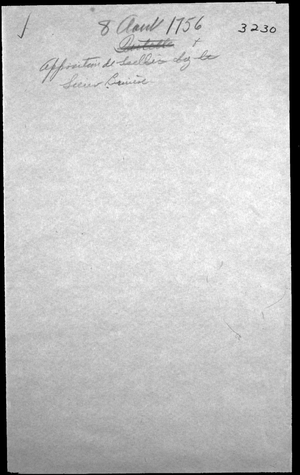 Apposition de scellés sur les biens et effets de feu Joseph-Bernard Bruière (Bruyere), 8 août 1756, Archives nationales à Québec, Fonds Cour supérieure. District judiciaire de Québec. Tutelles et curatelles, (03Q,CC301,S1,D3230).