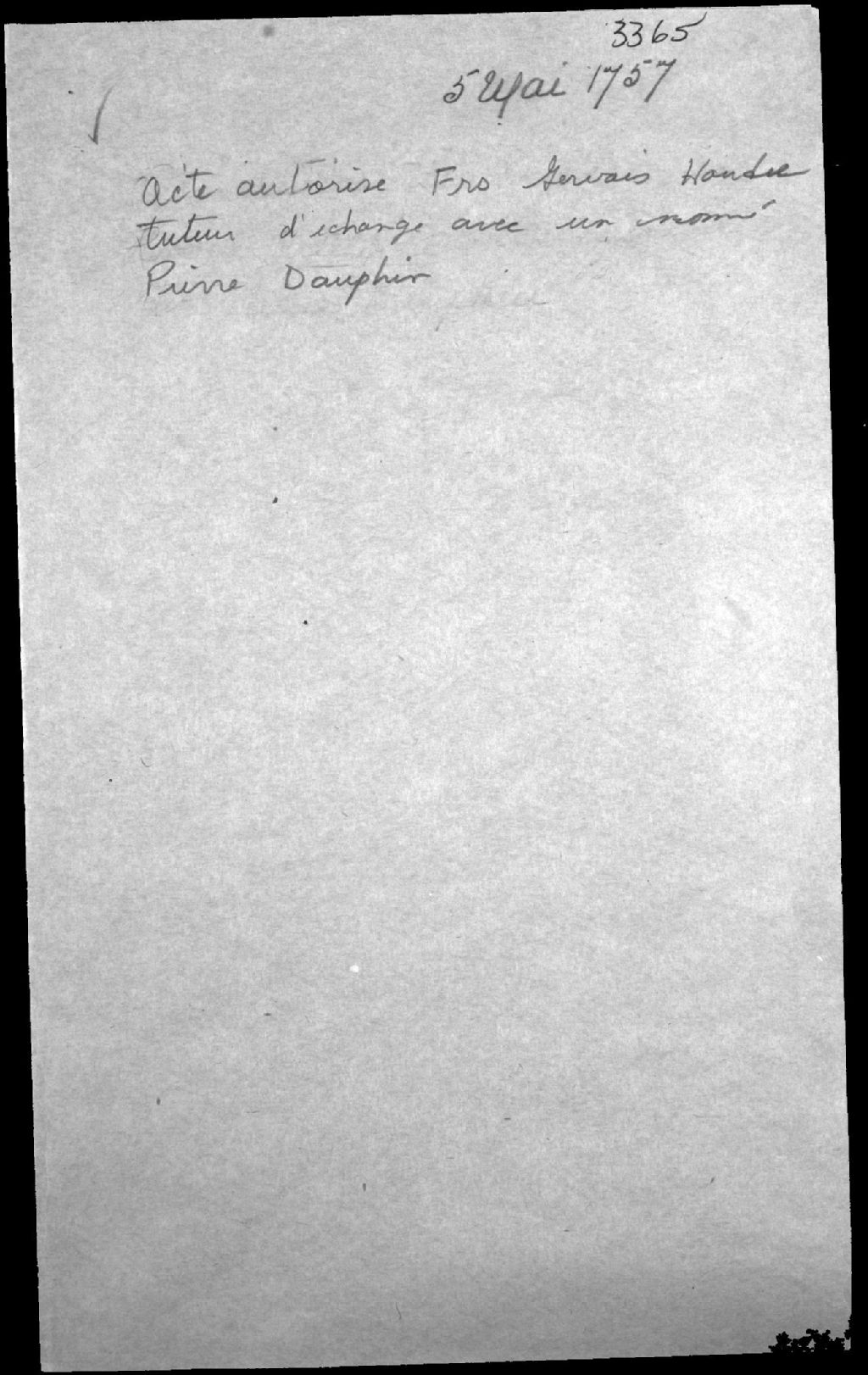 Acte autorisant François Gervais Houde à échanger avec Pierre Dauphin, la tutelle des mineurs de François-Gervais Houde, habitant, de Sainte-Croix, et de feue Marie-Marguerite Faucher