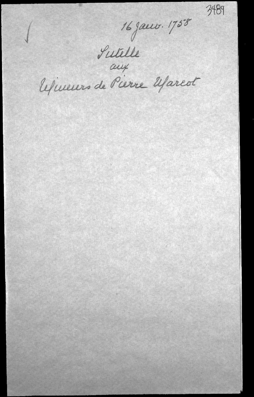 Tutelle aux mineurs de Pierre Marcot, habitant, de Nicolet, et de feue Anne Portelance, 16 janvier 1758, Archives nationales à Québec, Fonds Cour supérieure. District judiciaire de Québec. Tutelles et curatelles, (03Q,CC301,S1,D3489).