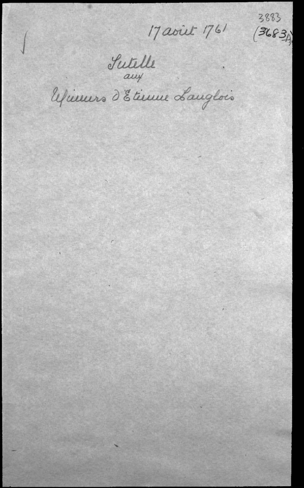 Tutelle aux mineurs de feu Étienne Langlois, veuf en premières noces de Marie-Angélique Bertrand, habitant de Sainte-Famille du Cap-Santé, et de Marie-Marguerite Tellier, 17 août 1761, Archives nationales à Québec, Fonds Cour supérieure. District judiciaire de Québec. Tutelles et curatelles, (03Q,CC301,S1,D3683A).