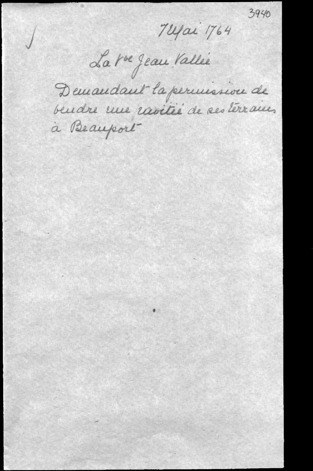 - Requête afin d’autoriser la vente d’une moitié de terrain appartenant à feu Jean Vallée, tailleur d'habits de la ville de Québec, et à Marie Chevalier