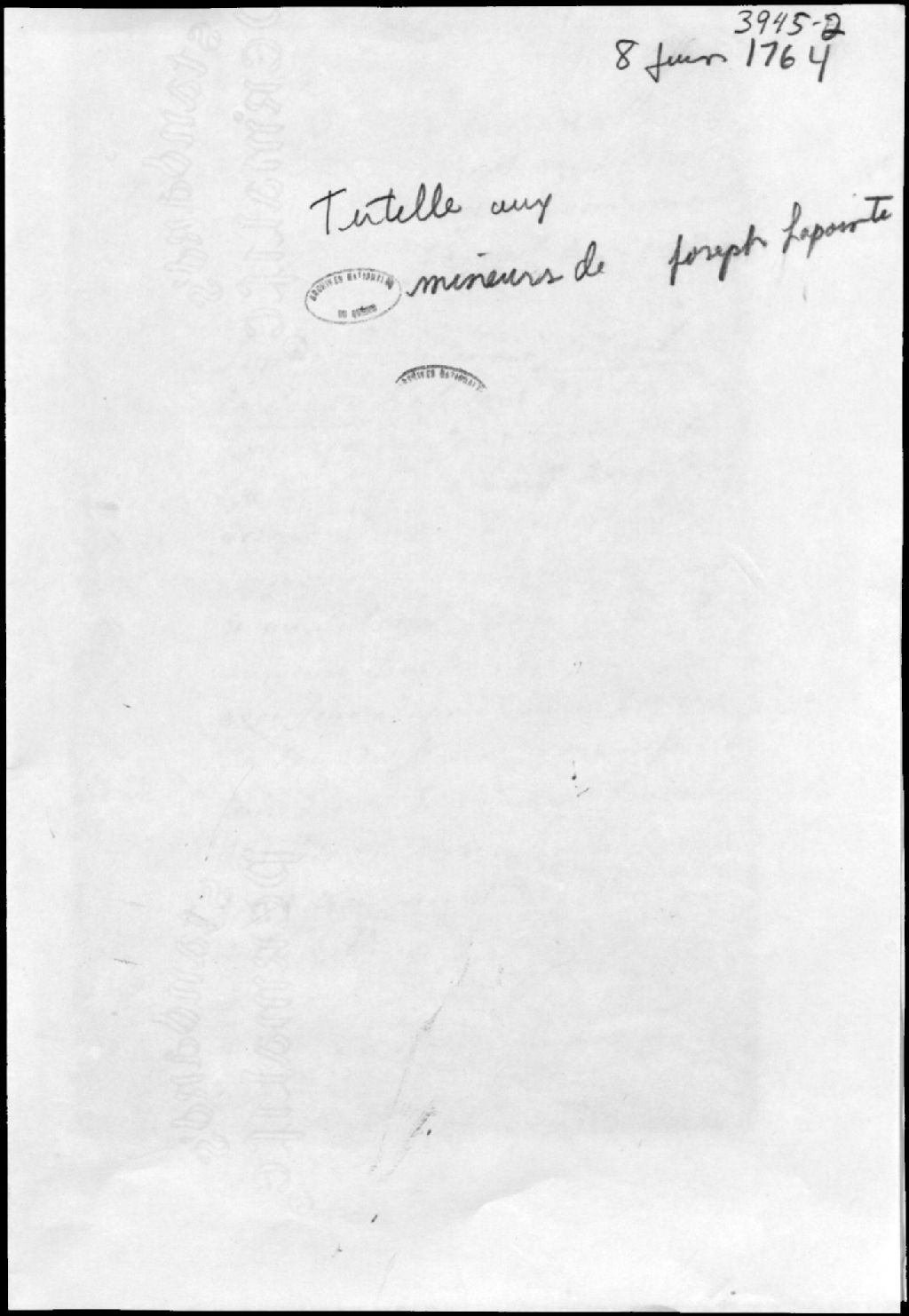 Tutelle aux mineurs de Joseph Lapointe, habitant de l'île d'Orléans, paroisse de Saint-Jean, et de feue Marie-Anne (Marianne) Terrien (Therrien), 8 juin 1764, Archives nationales à Québec, Fonds Cour supérieure. District judiciaire de Québec. Tutelles et curatelles, (03Q,CC301,S1,D3945A).
