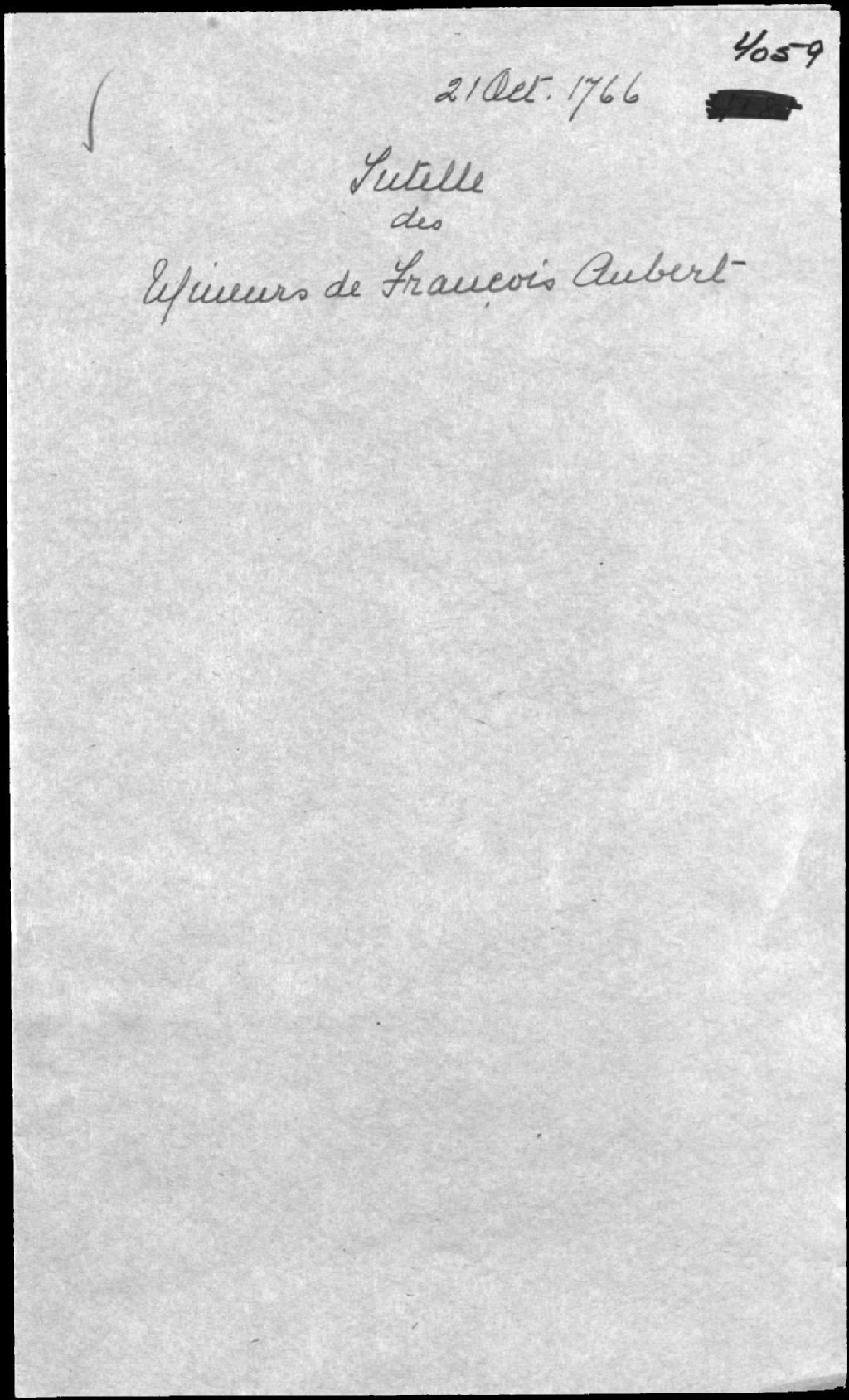 Tutelle aux mineurs de feu François Aubert, habitant de la paroisse de Sainte-Anne, et de feue Marie-Françoise Bérubé, 21 octobre 1766, Archives nationales à Québec, Fonds Cour supérieure. District judiciaire de Québec. Tutelles et curatelles, (03Q,CC301,S1,D4059).