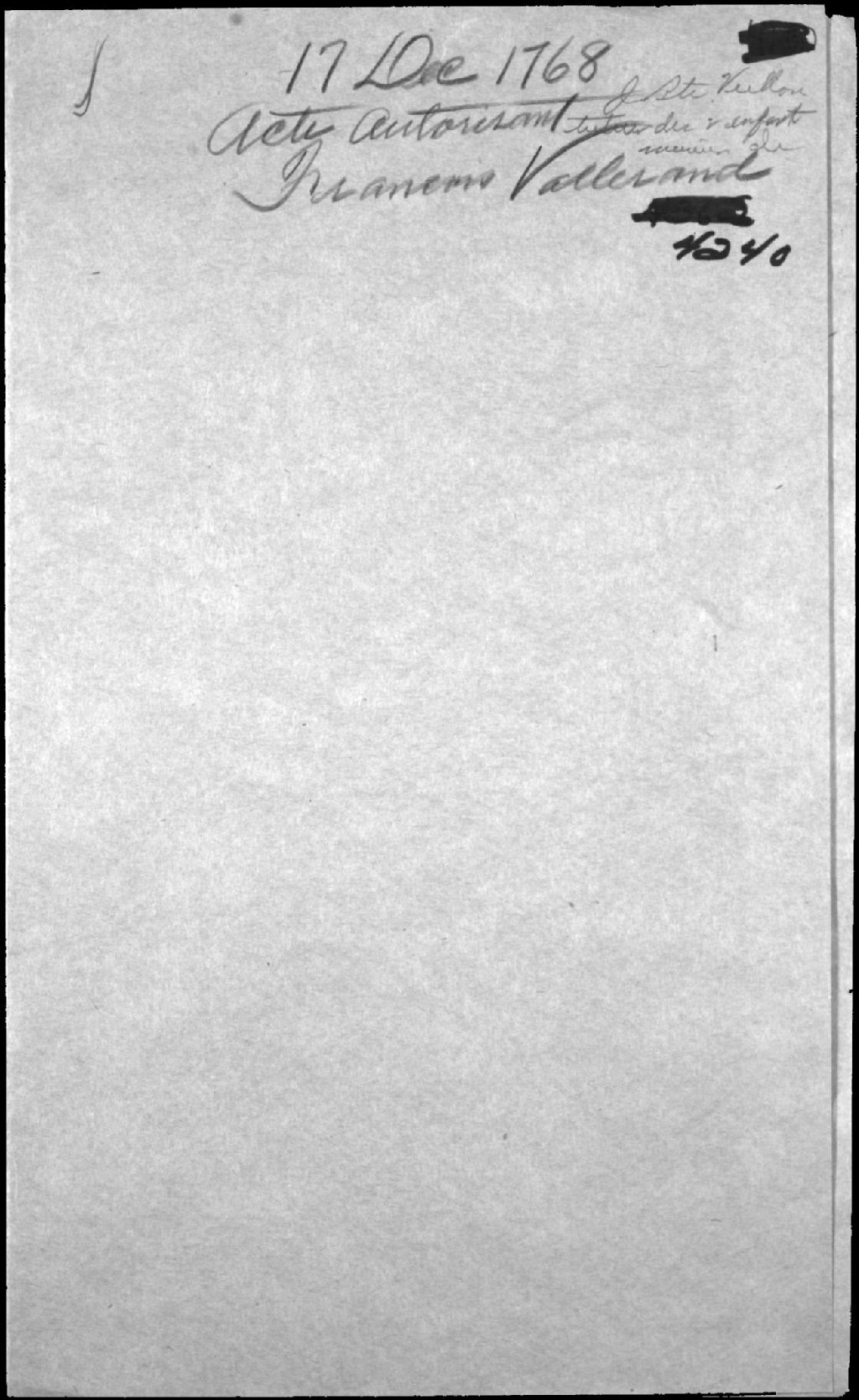 Acte d'autorisation au tuteur Jean-Baptiste Veillon afin de placer une rente aux enfants mineurs de feu François Vallerand et de Louise Samson, 17 décembre 1768, Archives nationales à Québec, Fonds Cour supérieure. District judiciaire de Québec. Tutelles et curatelles, (03Q,CC301,S1,D4240).