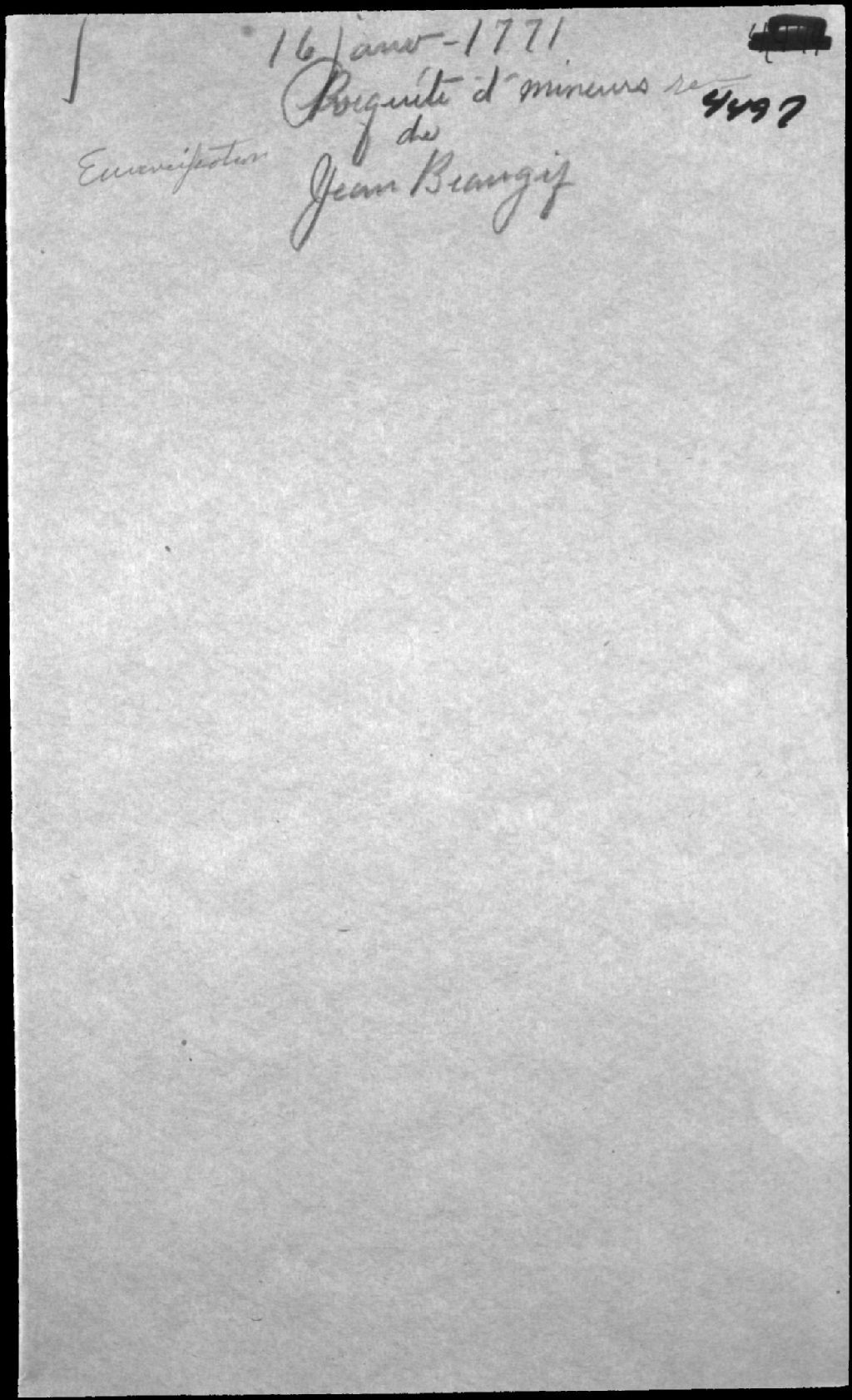 - Émancipation de Jean, Marie-Louise et Pierre, enfants mineurs de feu Jean Beaugif (Baugis, Beaugis, Baugy), habitant de Beauport, et de Marguerite Grenier