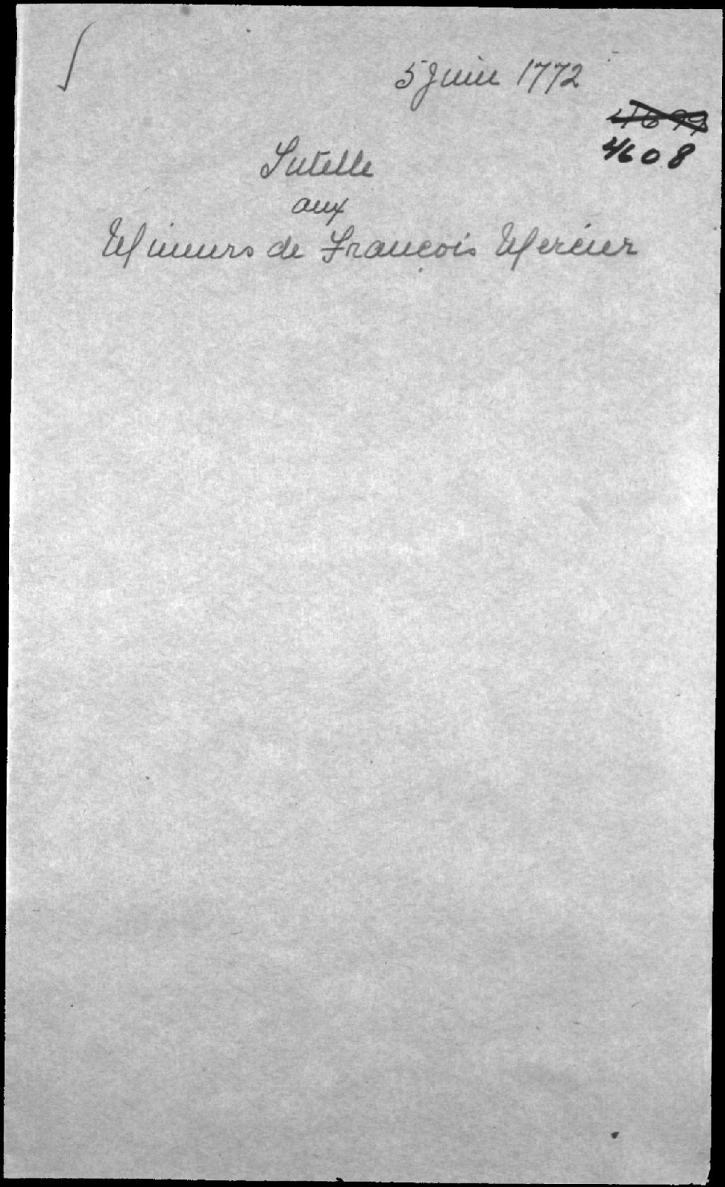 Tutelle aux mineurs de François Mercier, habitant de la paroisse de Saint-Michel, et de feue Marie-Madeleine Fortier, 6 juin 1772 et 15 juin 1772, Archives nationales à Québec, Fonds Cour supérieure. District judiciaire de Québec. Tutelles et curatelles, (03Q,CC301,S1,D4608).