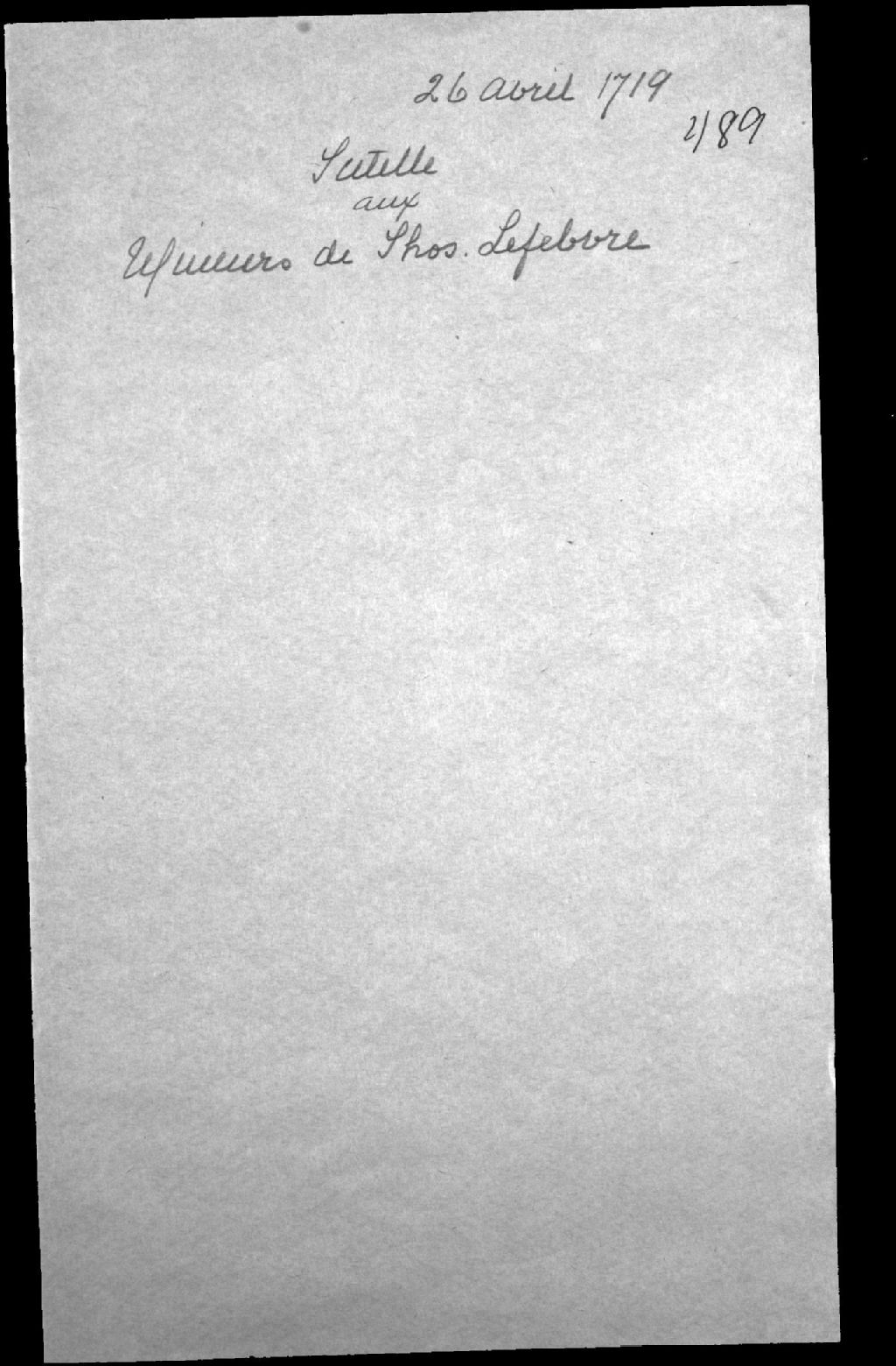 Tutelle aux mineurs de Thomas Lefebvre, marchand de Québec, et de feue Marie Gonthier, 26 avril 1719, Archives nationales à Québec, Fonds Cour supérieure. District judiciaire de Québec. Tutelles et curatelles, (03Q,CC301,S1,D489).