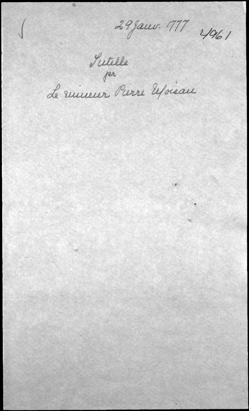 Acte d'assemblée pour la tutelle de Pierre, fils mineur de Pierre Moisan, habitant de Saint-Augustin (Saint-Augustin-de-Desmaures), et de feue Marie-Catherine Robitaille, 29 janvier 1777, Archives nationales à Québec, Fonds Cour supérieure. District judiciaire de Québec. Tutelles et curatelles, (03Q,CC301,S1,D4961).