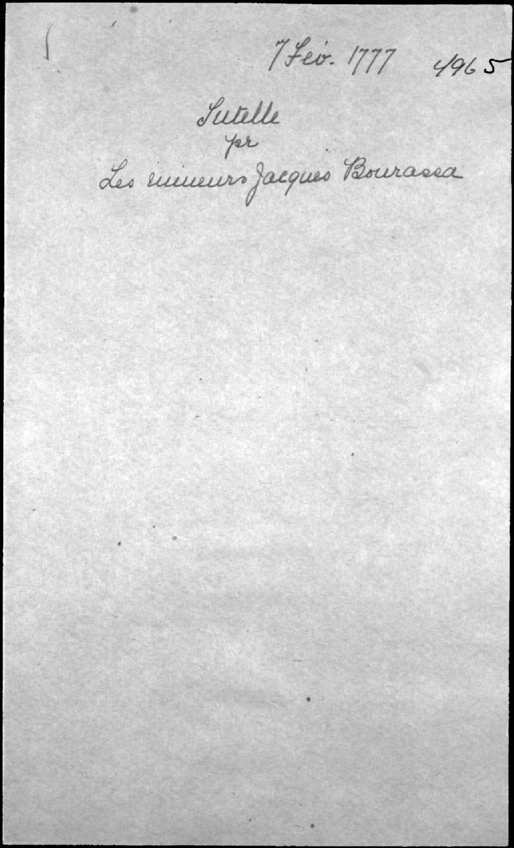 Tutelle aux mineurs de Jacques Bourassa, habitant de la paroisse de Saint-Joseph-de-la-Pointe-de-Lévy, et de feue Marie-Louise Carier (Carrier), 7 février 1777, Archives nationales à Québec, Fonds Cour supérieure. District judiciaire de Québec. Tutelles et curatelles, (03Q,CC301,S1,D4965).