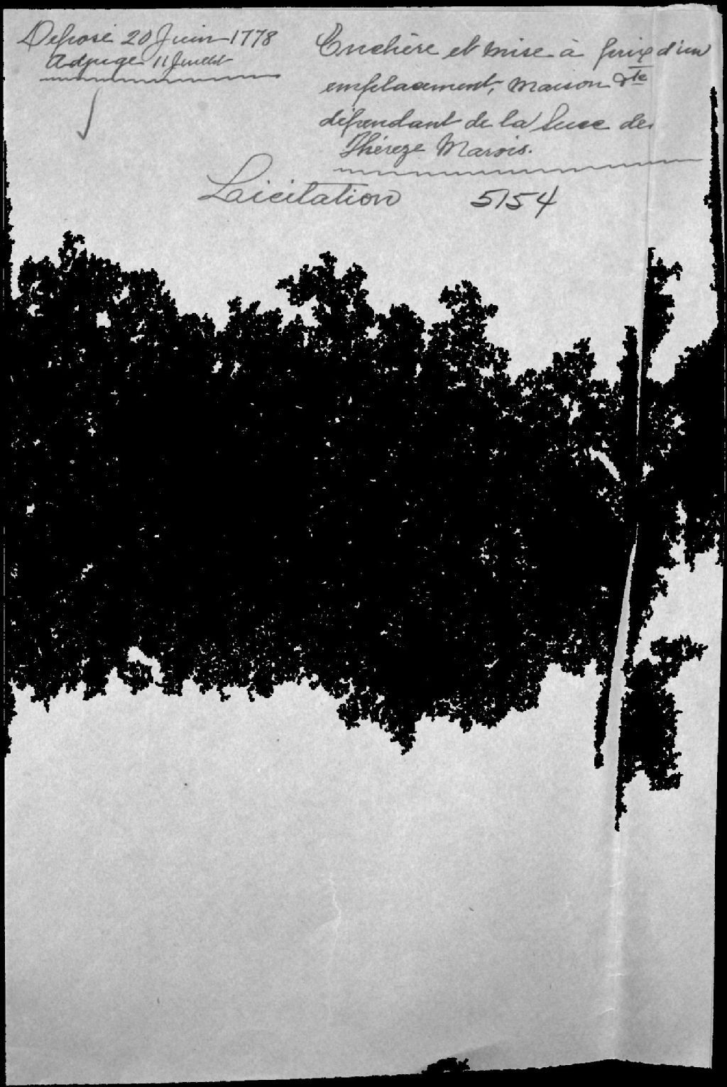Enchère et mise à prix d'un emplacement, d'une maison et d'un bâtiment situés en la Haute-Ville de Québec, rue Laval, appartenant aux héritières de feu René Chevalier et de feue Thérèse Marois