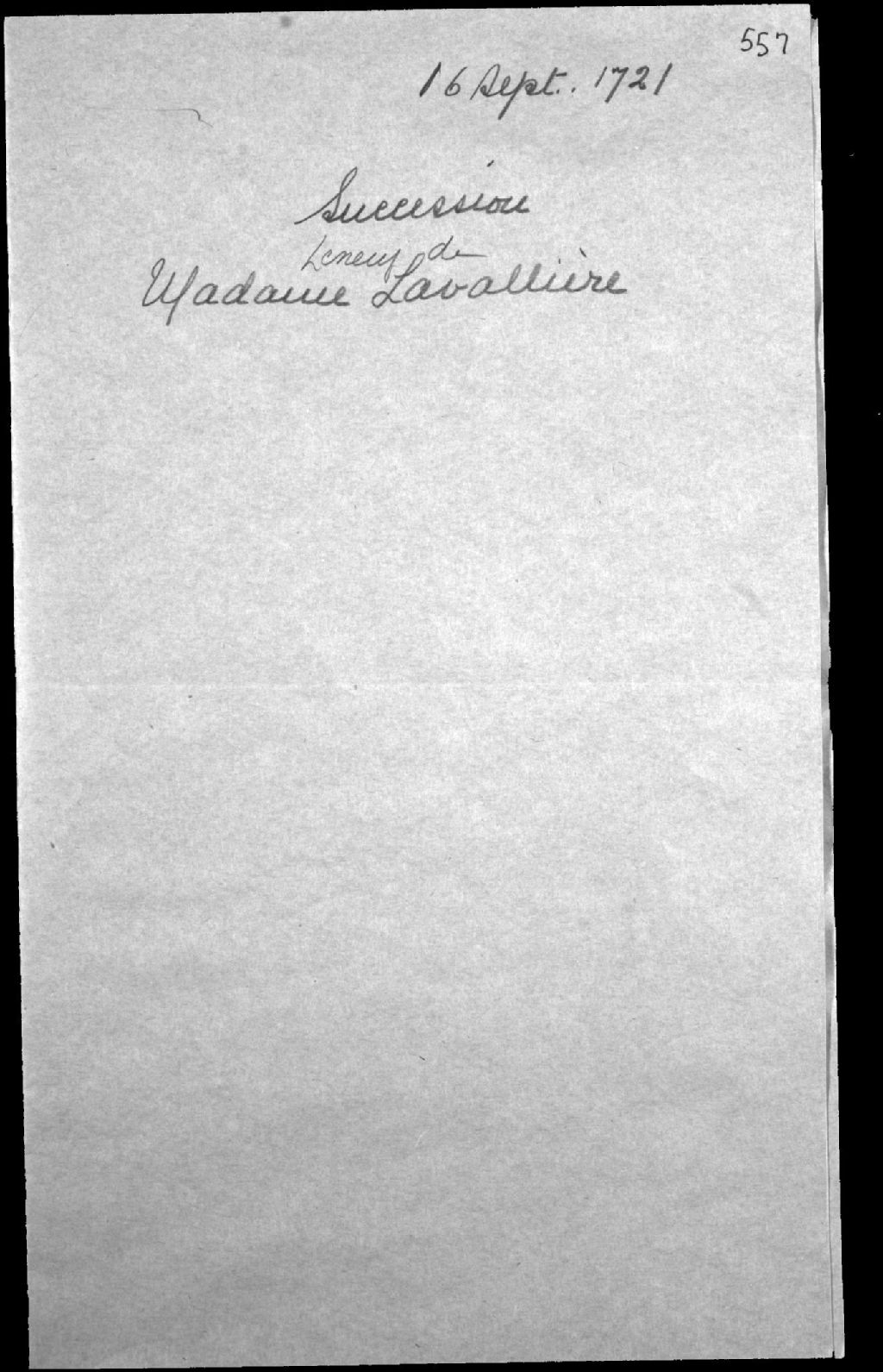 - Succession de feu Michel Leneuf dit de Lavallières, major de Montréal, et de Françoise Denis