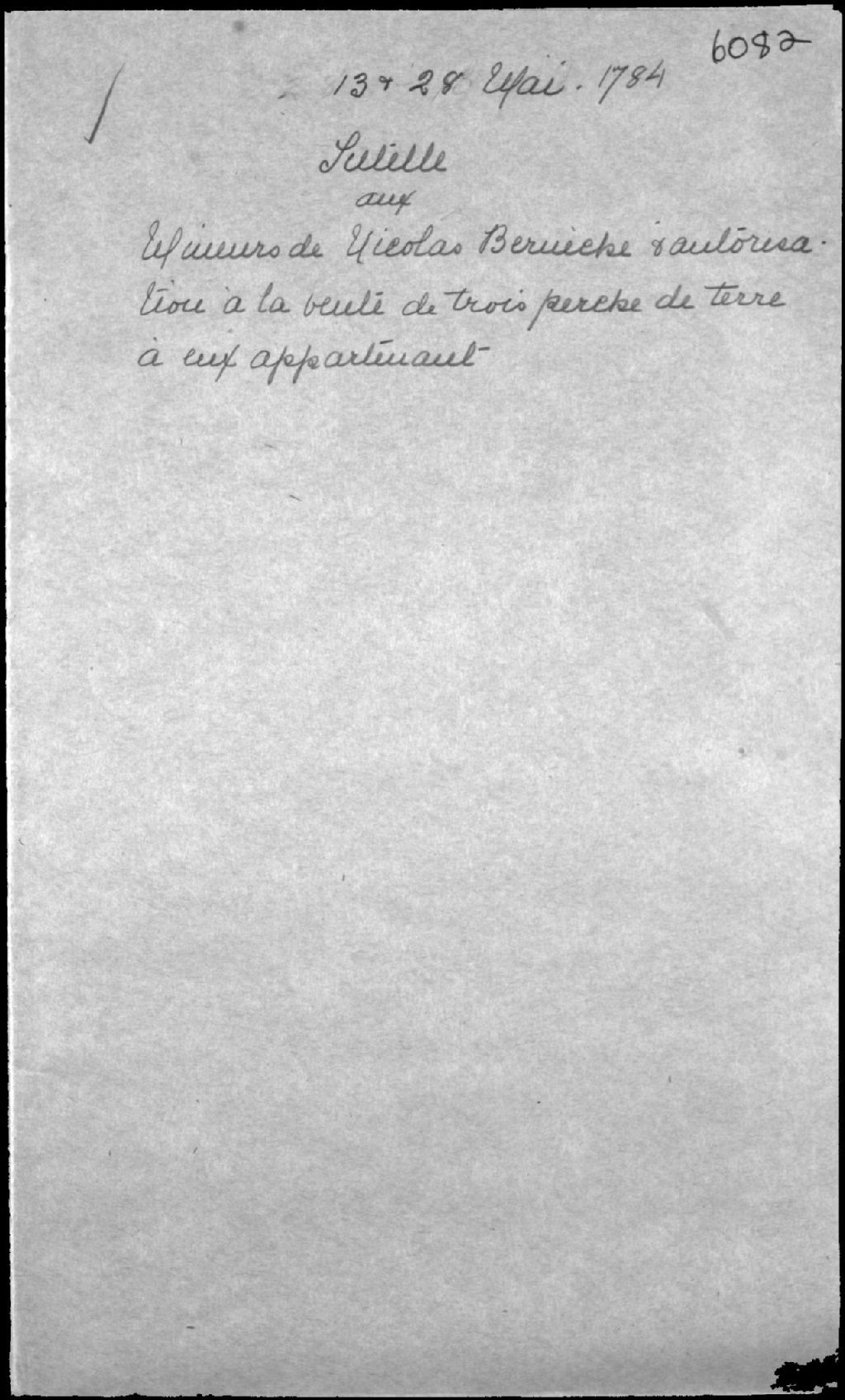 - Requête et assemblée de parents afin d'autoriser la vente d'une partie de terrain et tutelle aux mineurs de feu Nicolas Bernèche (Bernatchez), habitant de Saint-Thomas, rivière à la Caille, côte du Sud (Saint-Thomas-de-Montmagny), et de Marie-Thérèse Gagné