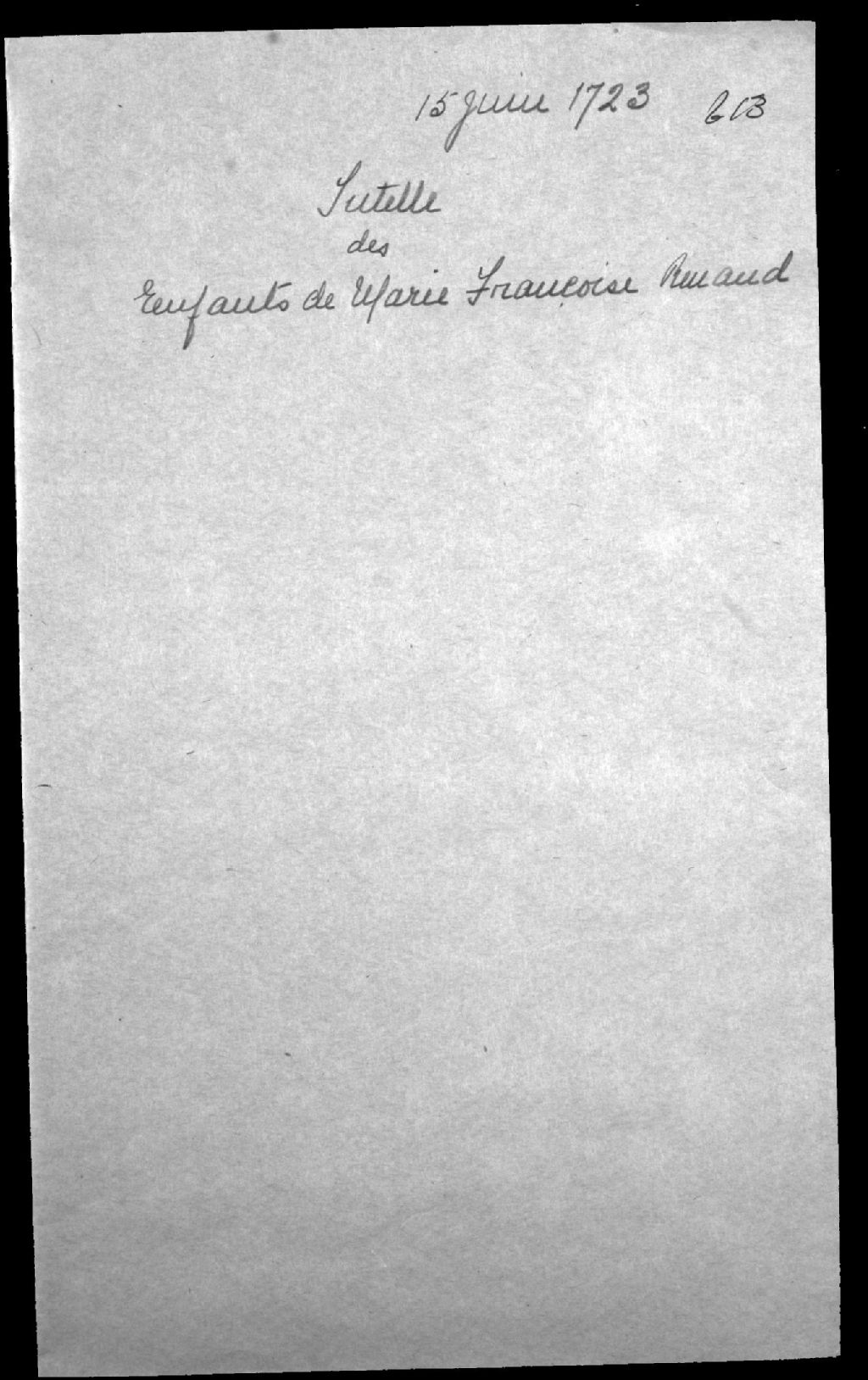 Tutelle aux mineurs d'Eustache Chartier de Lotbinière, conseiller et garde des sceaux au Conseil supérieur de Québec, et de feue Marie-Françoise Renaud d'Avesne de Méloise, 15 juin 1723, Archives nationales à Québec, Fonds Cour supérieure. District judiciaire de Québec. Tutelles et curatelles, (03Q,CC301,S1,D613).