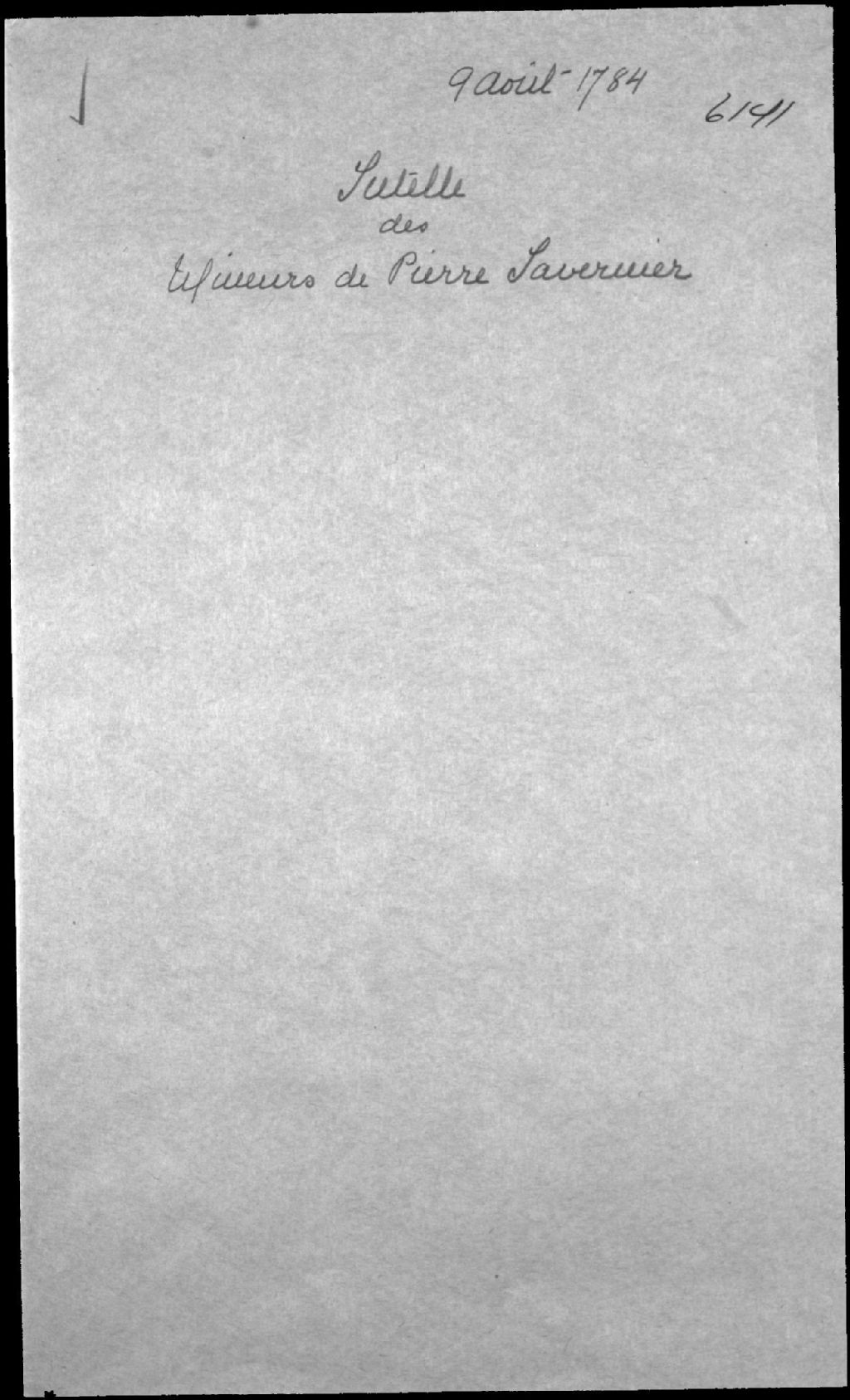 Tutelle aux mineurs de Pierre Tavernier, de la ville de Québec, et de feue Marie-Louise Vivier