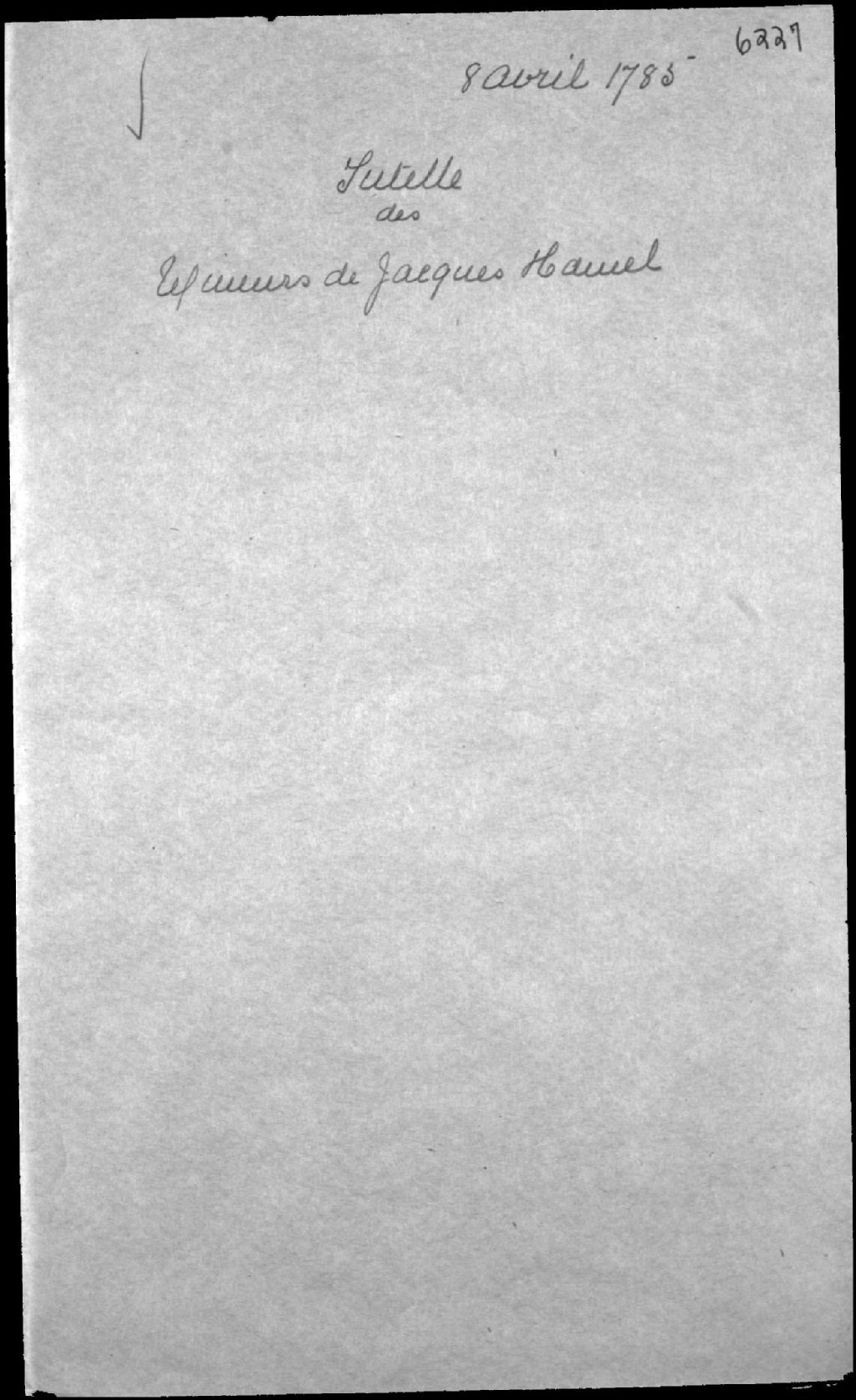 Tutelle aux mineurs de Jacques Hamel, habitant de la paroisse de Sainte-Croix, côte du Sud, et de feue Marie-Marguerite Rondaux (Rondeau)