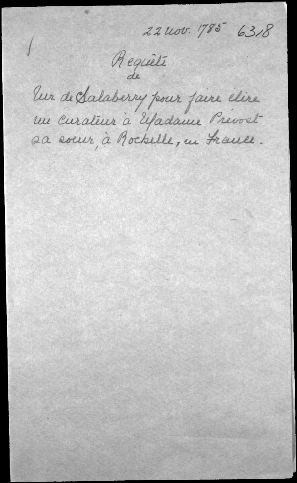 Curatelle pour la succession vacante de feu Louis Prévost, négociant, et de feue Marie-Angélique De Salaberry (Salaberry)