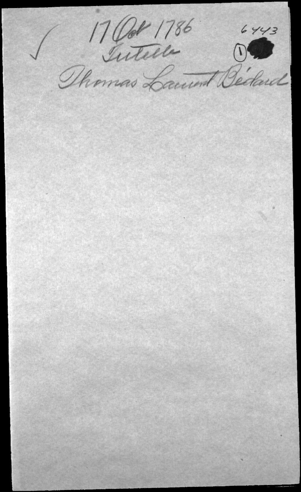 Requête et procès-verbal d'apposition des scellés sur les biens et effets de feu Eustache Chartier de Lotbinière, prêtre et curé de L'Ancienne-Lorrette, 17 octobre 1786, Archives nationales à Québec, Fonds Cour supérieure. District judiciaire de Québec. Tutelles et curatelles, (03Q,CC301,S1,D6443A).