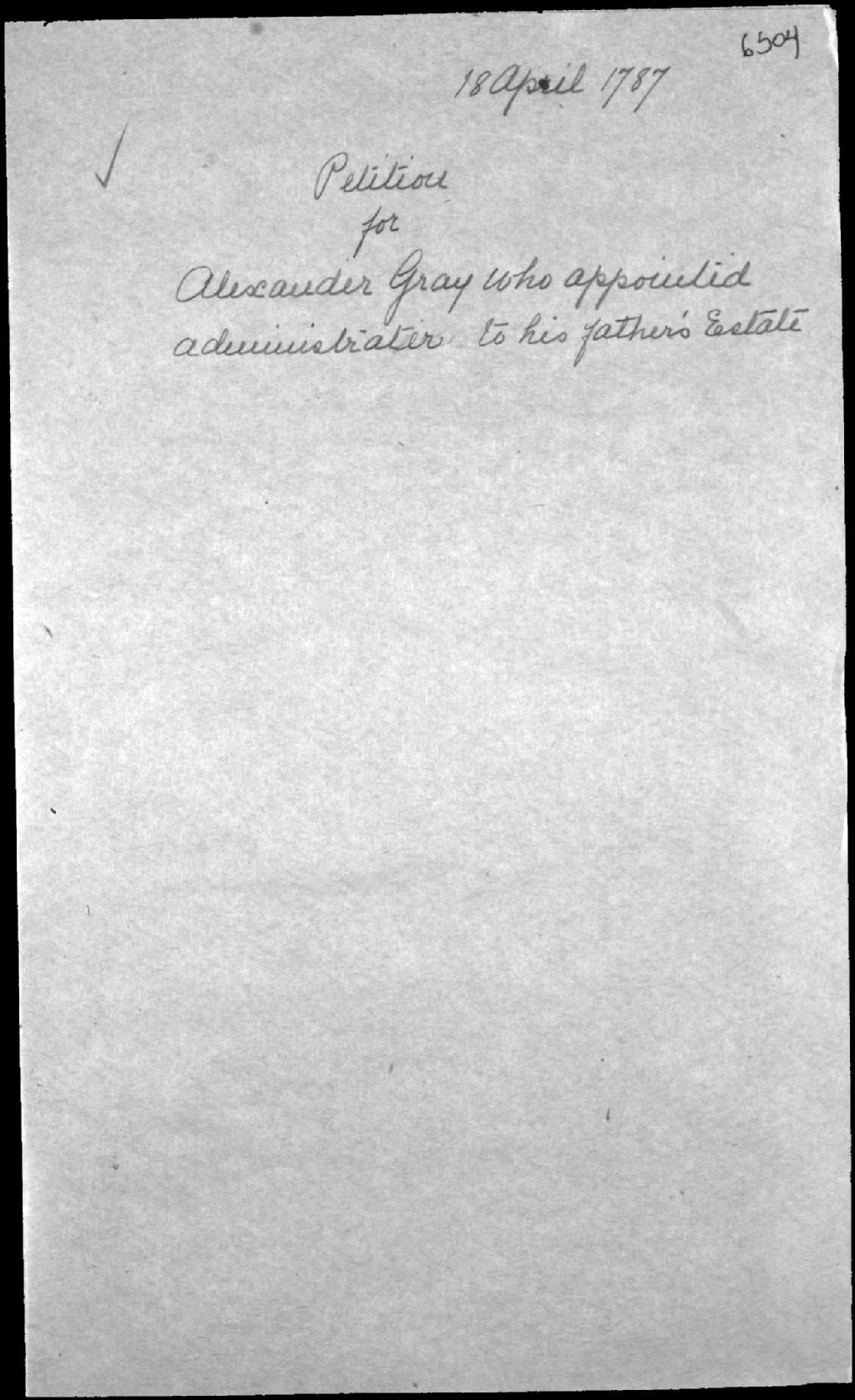 Requête pour la curatelle de feu John Gray et acte confirmant qu’Alexander Gray (fils) devient curateur après un second jugement de la Cour d'appel en la province de Québec, des effets et biens de son père feu Gray