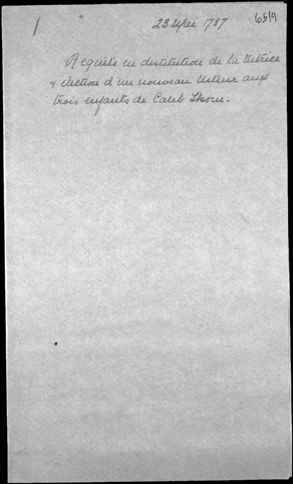Tutelle aux mineurs de feu Caleb Thorn (Thorne), maître voilier de la ville de Québec, et de Louise Chalifour (Chalifou, Chalifoux)
