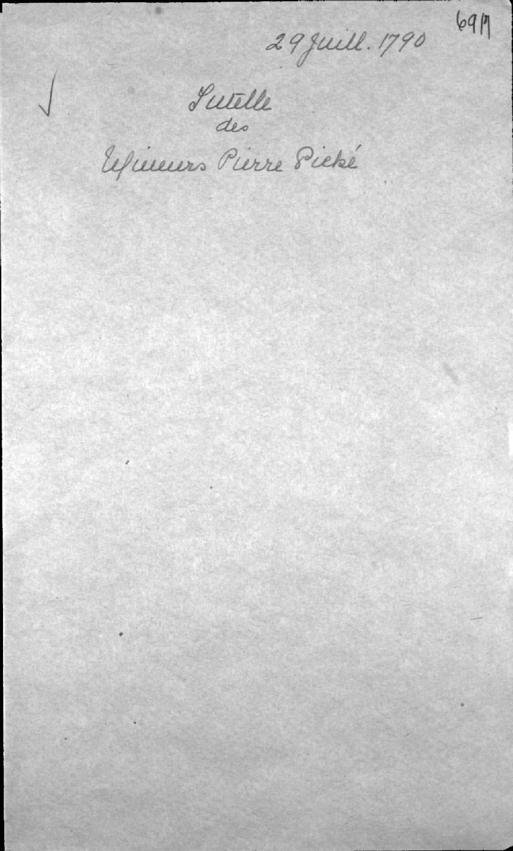 Tutelle aux mineurs de Pierre Pichet (Pichette, Piché), habitant de Cap-Santé, et de feue Marie-Anne (Marianne) Lafrance, 18 juin 1790, Archives nationales à Québec, Fonds Cour supérieure. District judiciaire de Québec. Tutelles et curatelles, (03Q,CC301,S1,D6917).