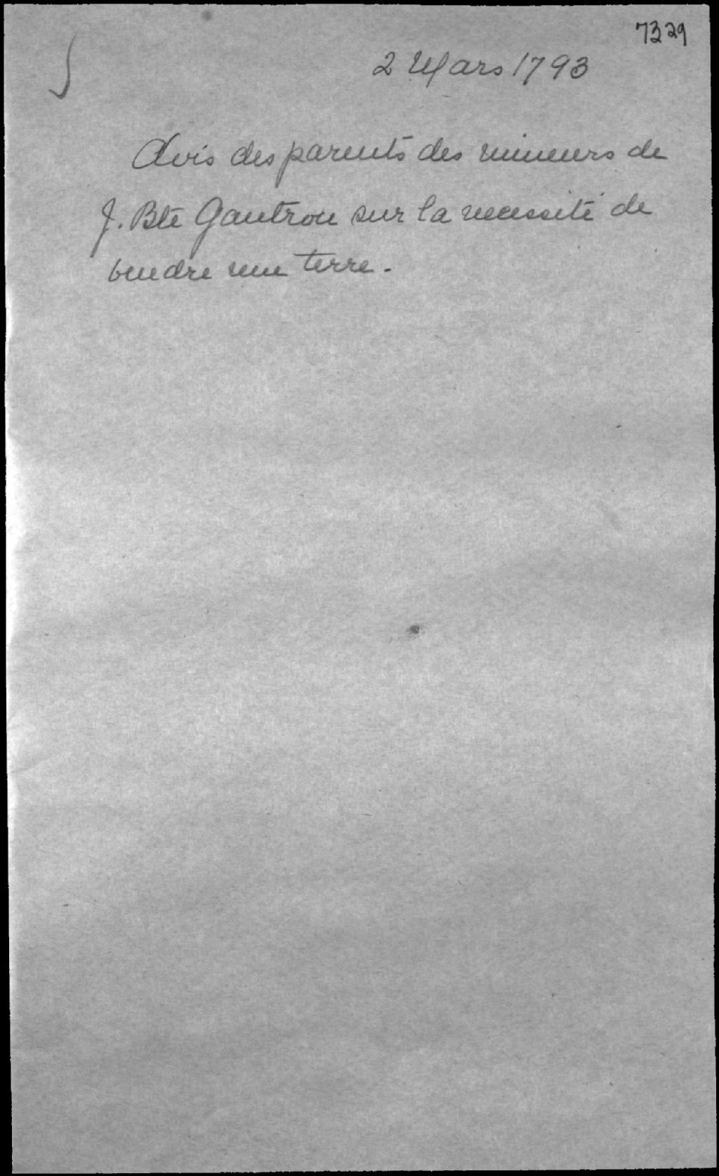 - Assemblée des parents et amis pour la vente d'un terrain appartenant aux mineurs de feu Jean-Baptiste Gautron dit La Rochelle (Larochelle), de Saint-Michel (Saint-Michel-de-Bellechasse), et d'Ursule Roy