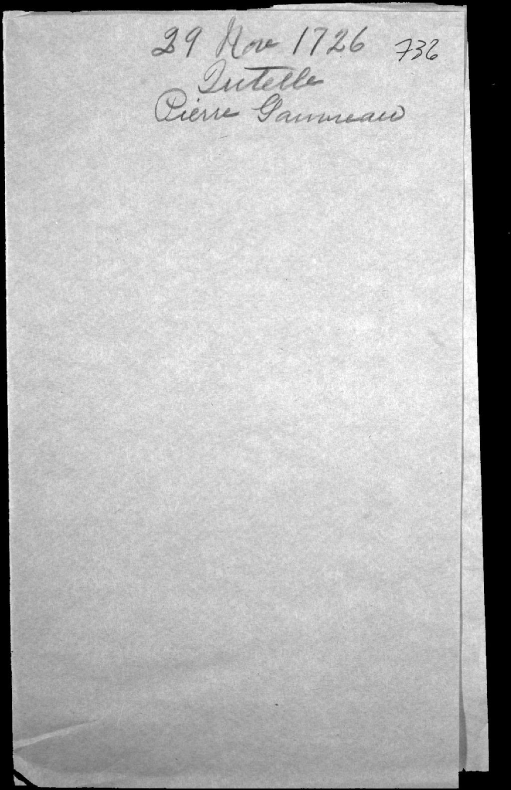 Acte qui décharge Jourdain Lajus, de la tutelle des mineurs de feu Pierre Gauvreau, armurier de Québec, et de Madeleine Ménage, 29 novembre 1726, Archives nationales à Québec, Fonds Cour supérieure. District judiciaire de Québec. Tutelles et curatelles, (03Q,CC301,S1,D736).