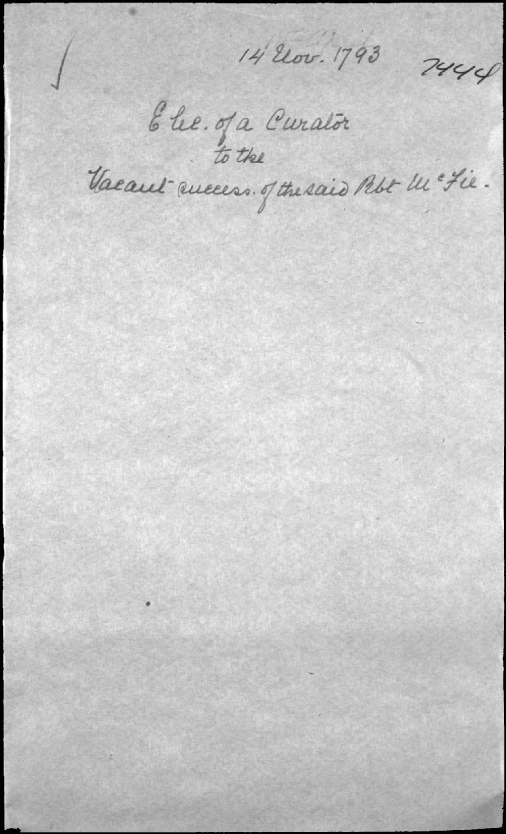 - Curatelle pour feu Robert Mcfie (McPhee), commerçant (shopkeeper) de la ville de Québec