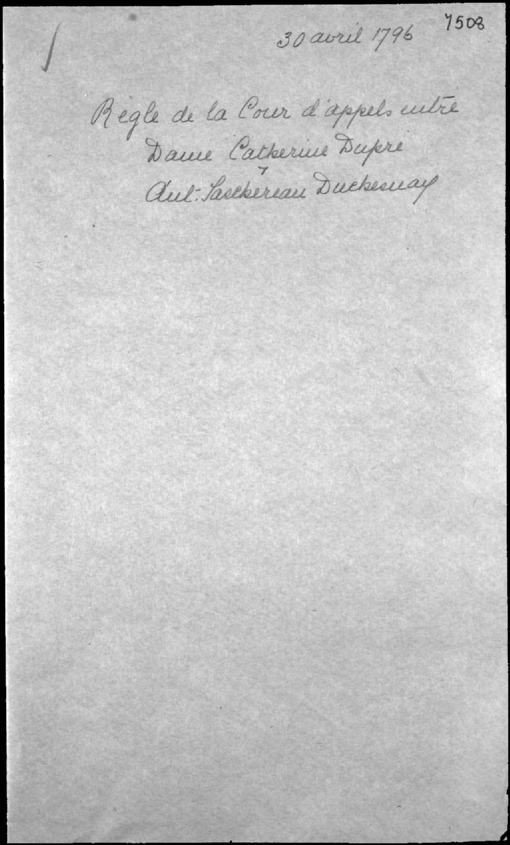 Règle de la Cour d'appel entre Antoine Tachereau (Taschereau) Duchesnay, écuyer et seigneur de Beauport du Manoir de Beauport, près de Québec, et Catherine Dupré