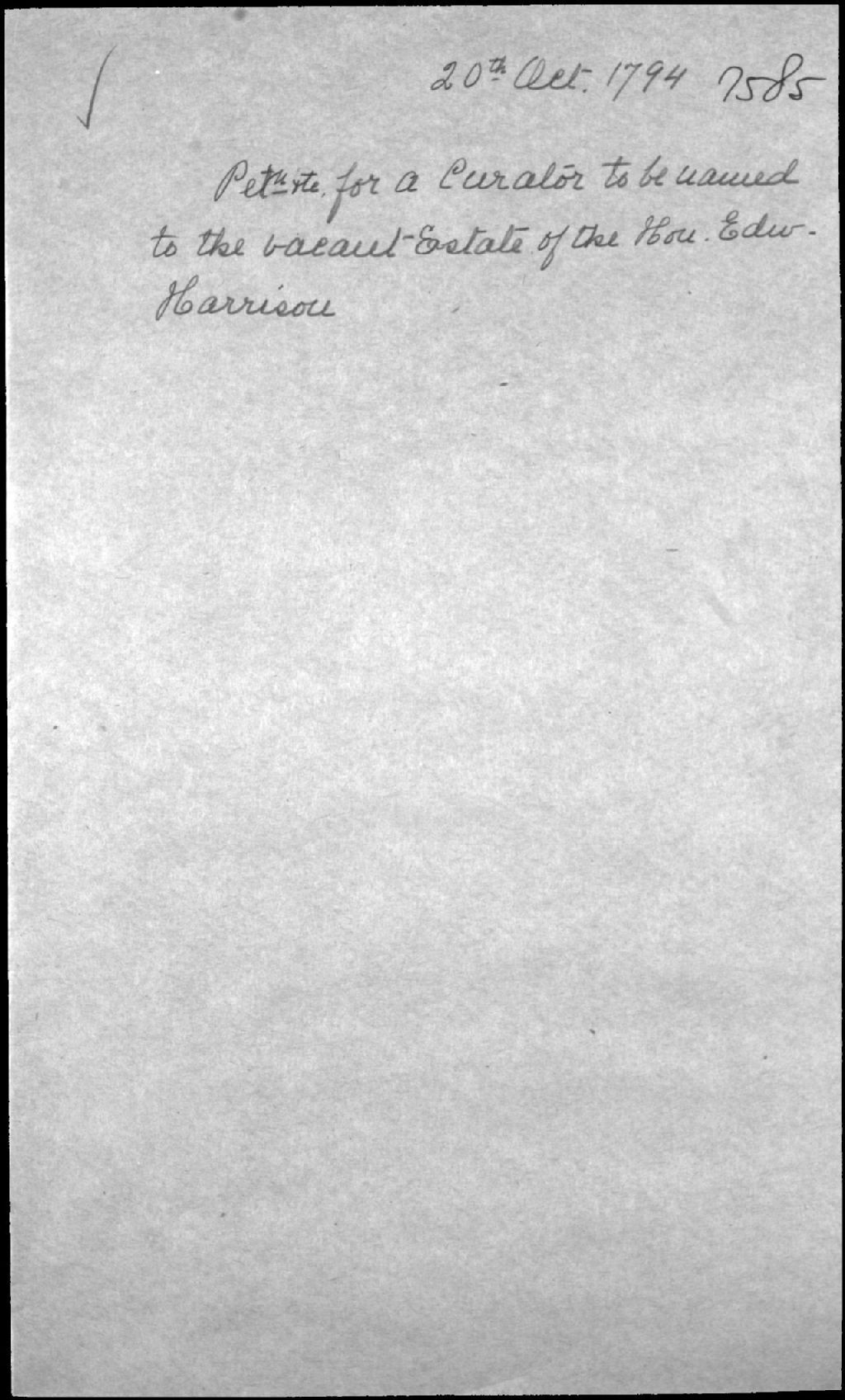 Curatelle pour feu Edward Harrison, 18 octobre 1794 au 20 octobre 1794, Archives nationales à Québec, Fonds Cour supérieure. District judiciaire de Québec. Tutelles et curatelles, (03Q,CC301,S1,D7585).