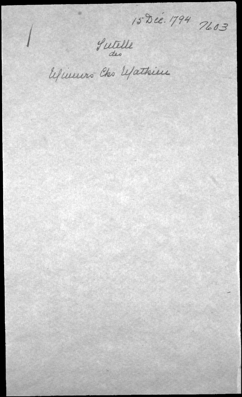 Tutelle aux mineurs de feu Charles Mathieu, habitant de l'Ange-Gardien, et de Marie-Josèphe (Josephte, Josette) Mercier, 17 septembre 1794, Archives nationales à Québec, Fonds Cour supérieure. District judiciaire de Québec. Tutelles et curatelles, (03Q,CC301,S1,D7603).