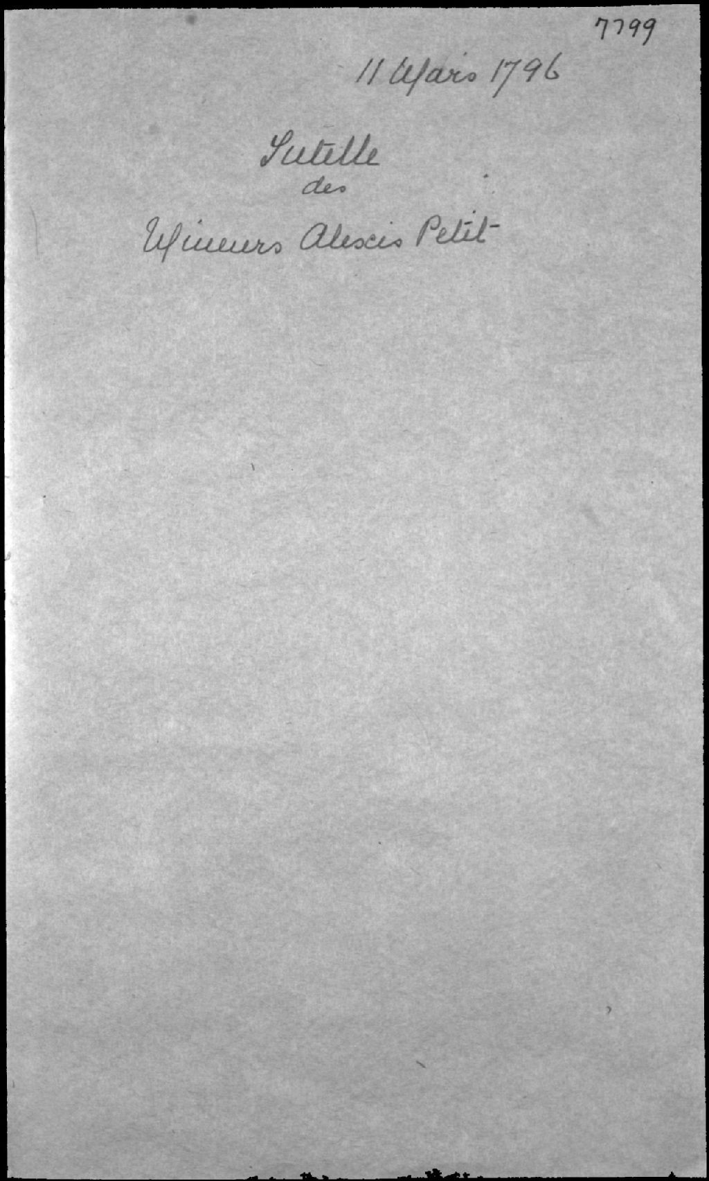 Tutelle aux mineurs de feu Alexis Petit, habitant de la Paroisse du Cap-Santé, village du Grand-Bois-de-l'Ail, et de Marie-Anne (Marianne) Godin, 1er mars 1796 au 4 mars 1796, Archives nationales à Québec, Fonds Cour supérieure. District judiciaire de Québec. Tutelles et curatelles, (03Q,CC301,S1,D7799).