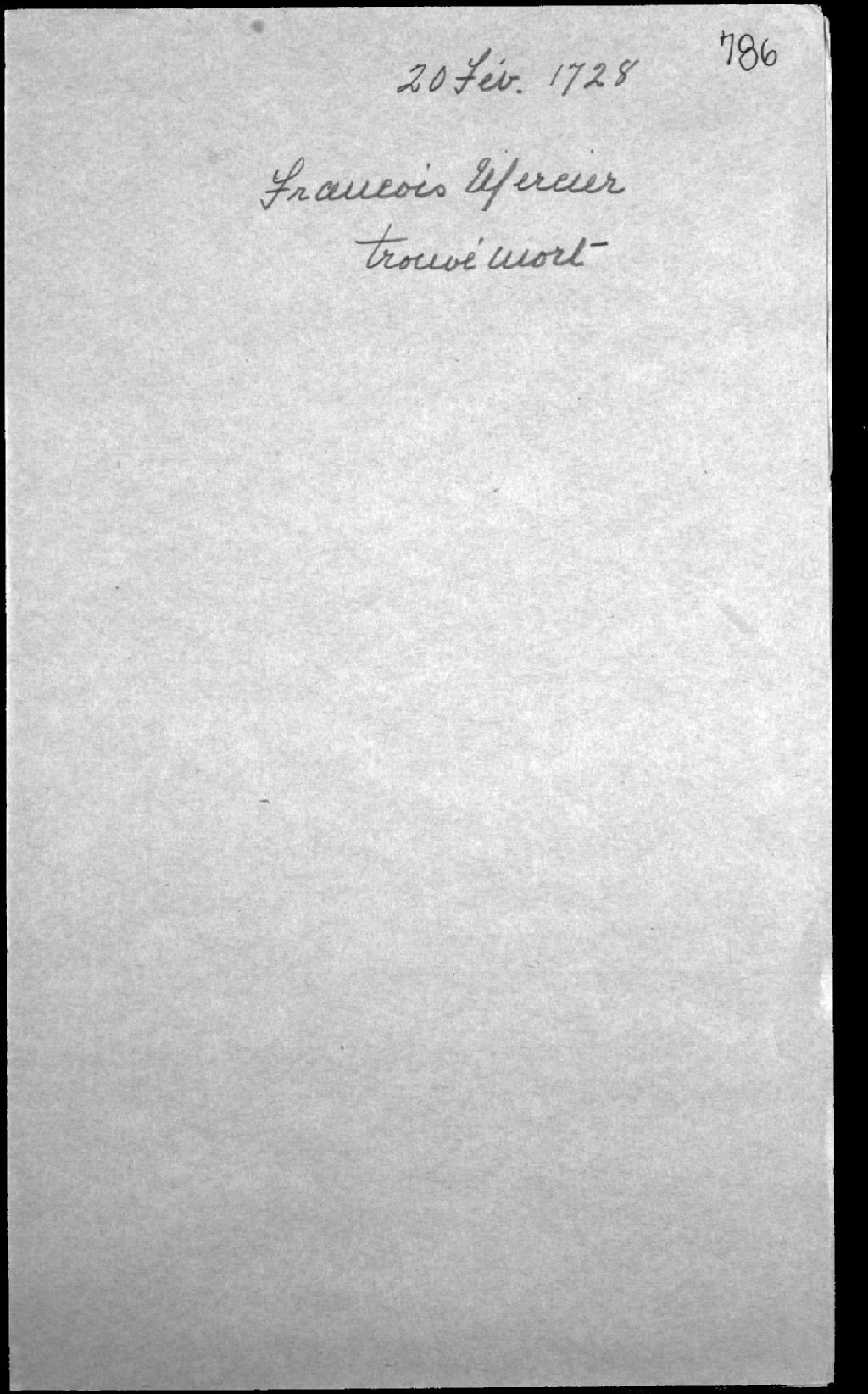 Procès-verbal de la levée du corps de feu François Mercier, serrurier, de Québec, 20 février 1728, Archives nationales à Québec, Fonds Cour supérieure. District judiciaire de Québec. Tutelles et curatelles, (03Q,CC301,S1,D786).