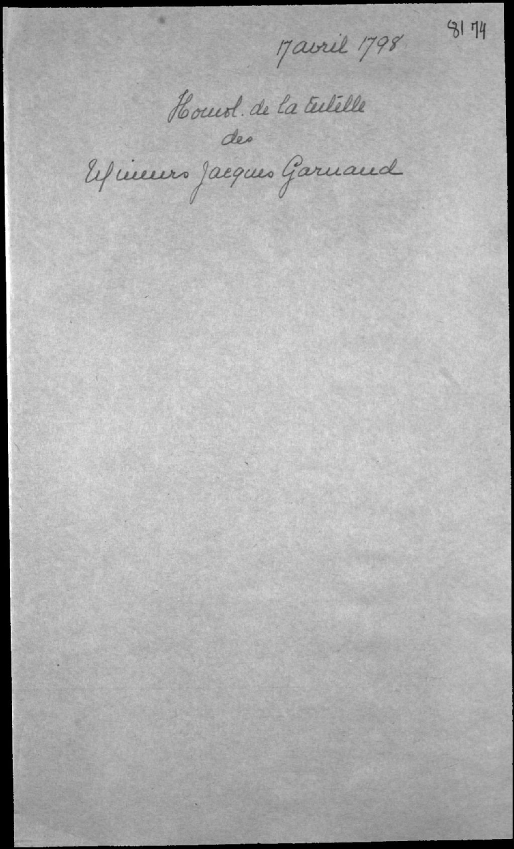 Tutelle aux mineurs de Jacques Garnaud (Garneau), habitant de la paroisse de Saint-Augustin, et de feue Geneviève Lené (Laîné), 28 mars 1798 au 17 avril 1798, Archives nationales à Québec, Fonds Cour supérieure. District judiciaire de Québec. Tutelles et curatelles, (03Q,CC301,S1,D8174).