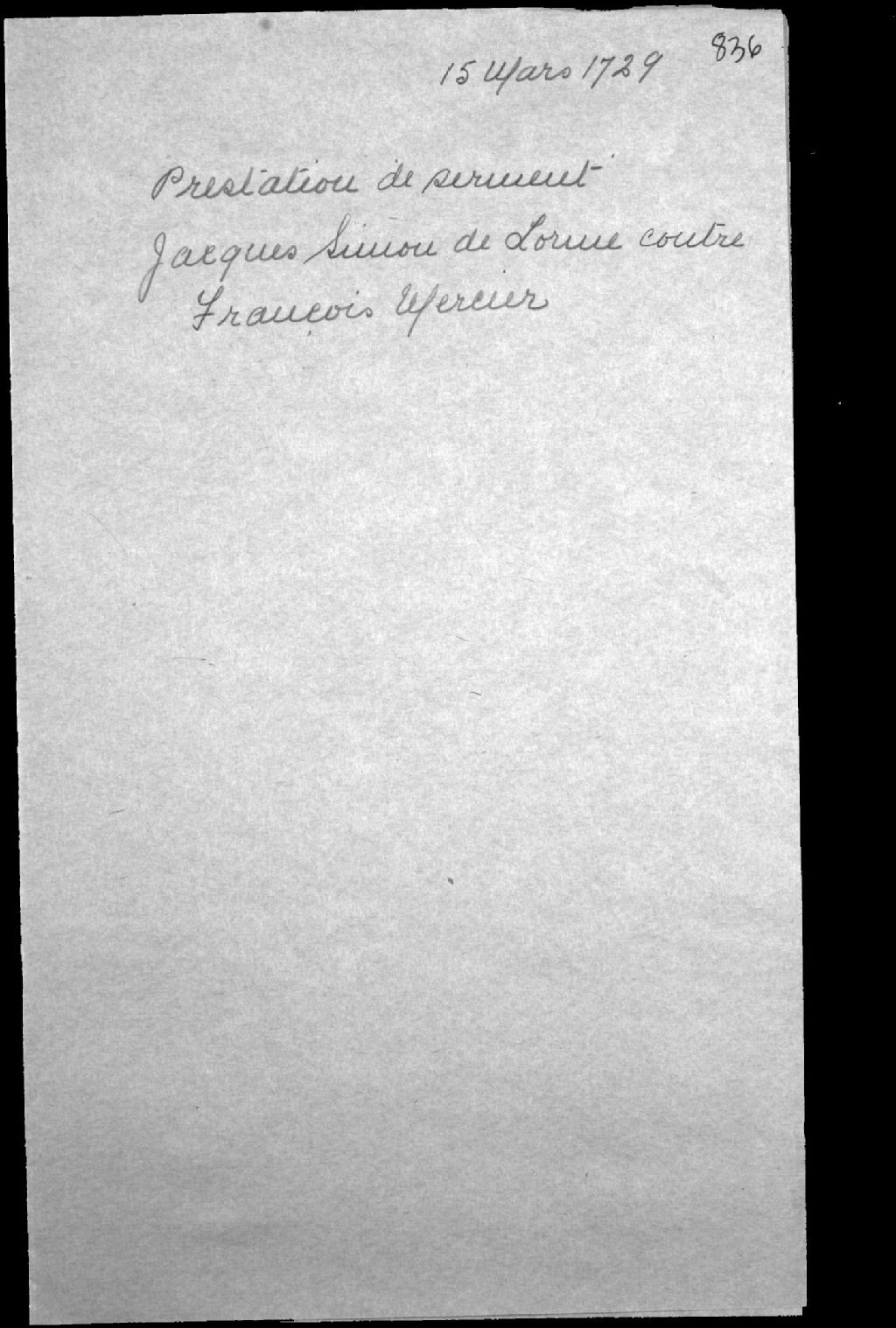 - Prestation de serments par les arbitres pour régler les comptes du différent entre Jacques-Simon Delorme, charron, et François Mercier, serrurier, de Québec