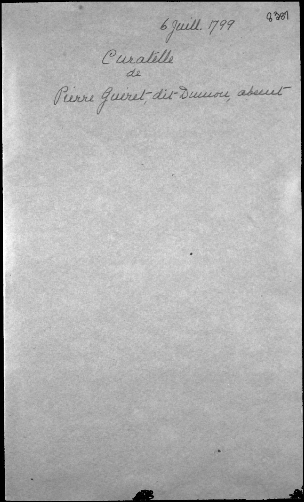 - Curatelle pour Pierre Guéret dit Dumon (Dumont), absent de la province de Québec