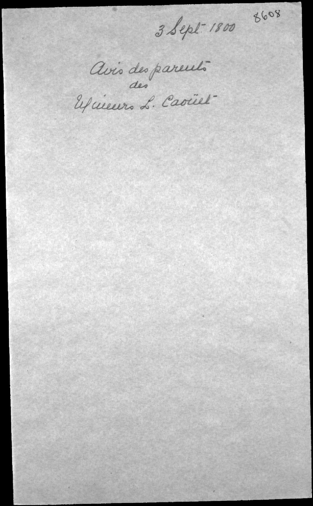 Avis de parents des enfants mineurs de feu Levrard Caoüet (Cahouette, Caouette), du Cap-Saint-Ignace, et de Marie-Geneviève Bourgault