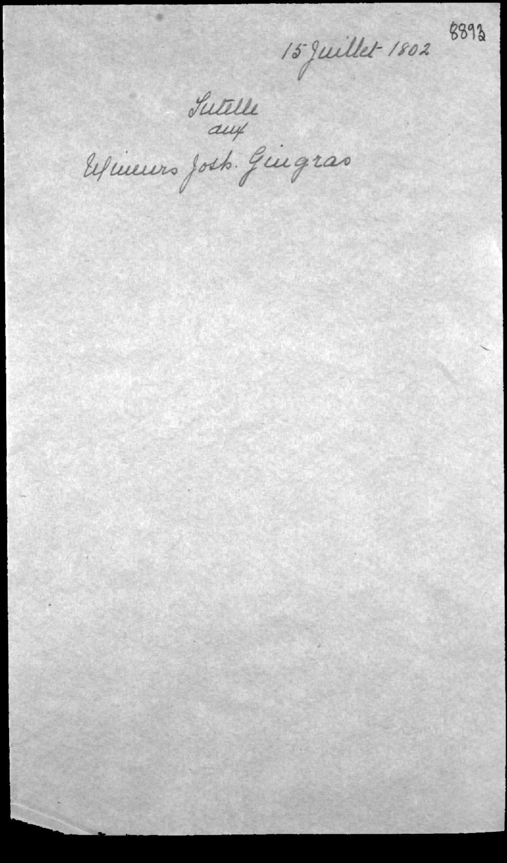 Tutelle des enfants mineurs de Joseph Gingras, habitant de Saint-Augustin (Saint-Augustin-de-Desmaures), et de feue Louise Cantin (Quentin, Quantin), 15 juillet 1802, Archives nationales à Québec, Fonds Cour supérieure. District judiciaire de Québec. Tutelles et curatelles, (03Q,CC301,S1,D8893).