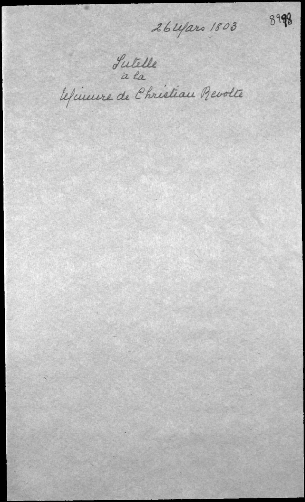 Tutelle de l'enfant mineur de Christian Révolte, de Québec, et de Marguerite Lemay, 26 mars 1803, Archives nationales à Québec, Fonds Cour supérieure. District judiciaire de Québec. Tutelles et curatelles, (03Q,CC301,S1,D8998).