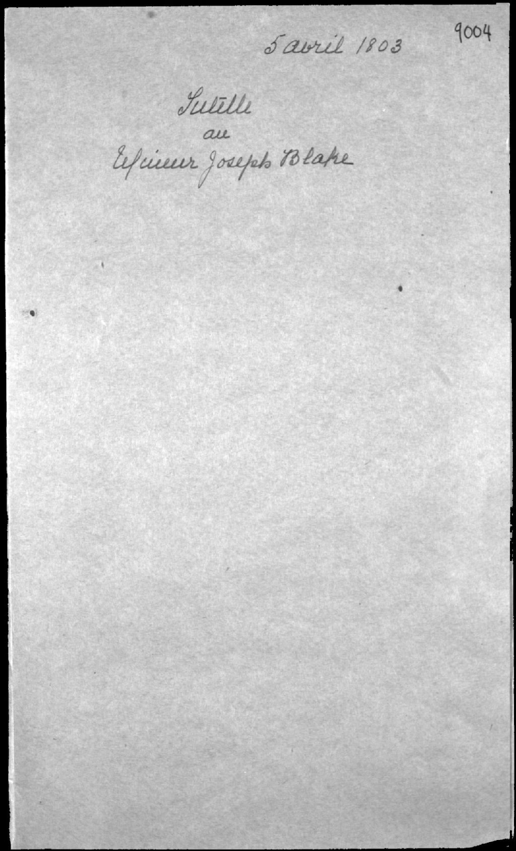 - Tutelle des enfants mineurs de feu John Blake, soldat dans le 8e Régiment de Sa Majesté de Québec, et de feue Marie Tessier
