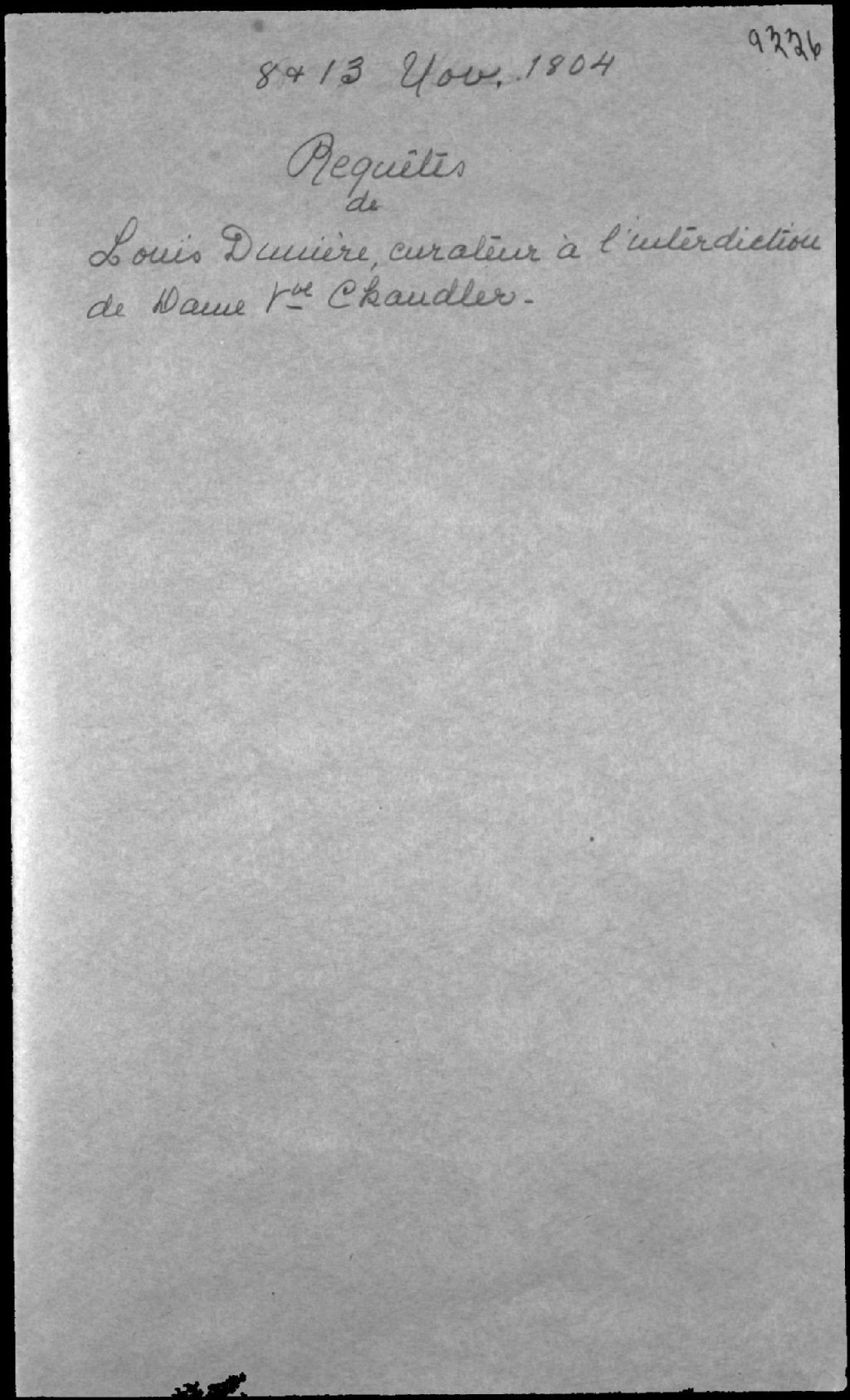 - Requête pour interdire à la veuve de prendre avis de parents sur un partage de biens provenant de la communauté de feu Kenelm Chandler, garde-magasin de l'Ordonnance à Québec de Québec, et de Charlotte Dunière (Gunière)