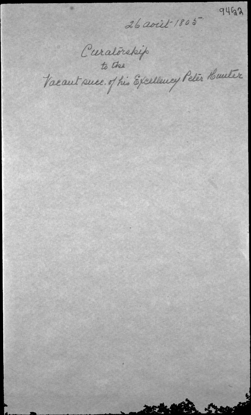 Curatelle pour la succession vacante de feu Peter Hunter, officier de Québec