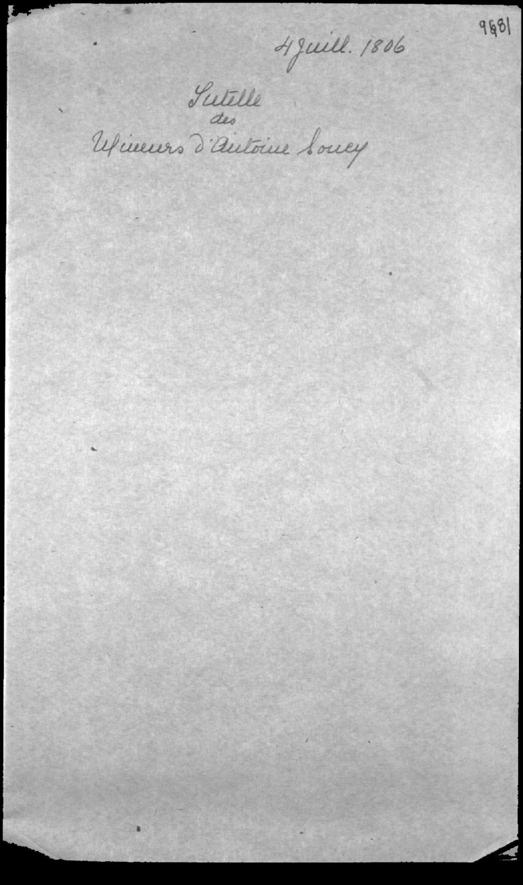 Tutelle des enfants mineurs d'Antoine Soucy, habitant de Saint-Louis-de-Kamouraska, et de feue Marie-Anne (Marianne) Ouellet