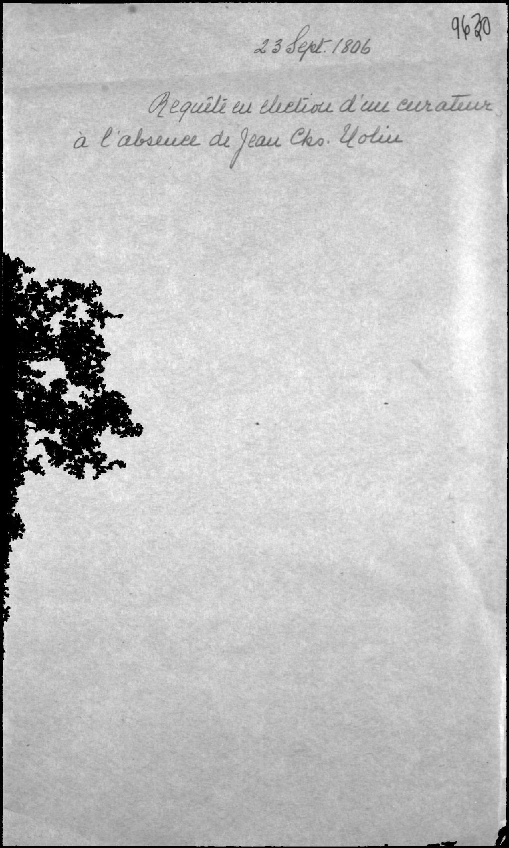 Requête pour choisir un curateur en l'absence d'une personne pour la succession de feu Charles Nolin, maître armurier de Québec, et de feue Angélique Palin dit Dabonville