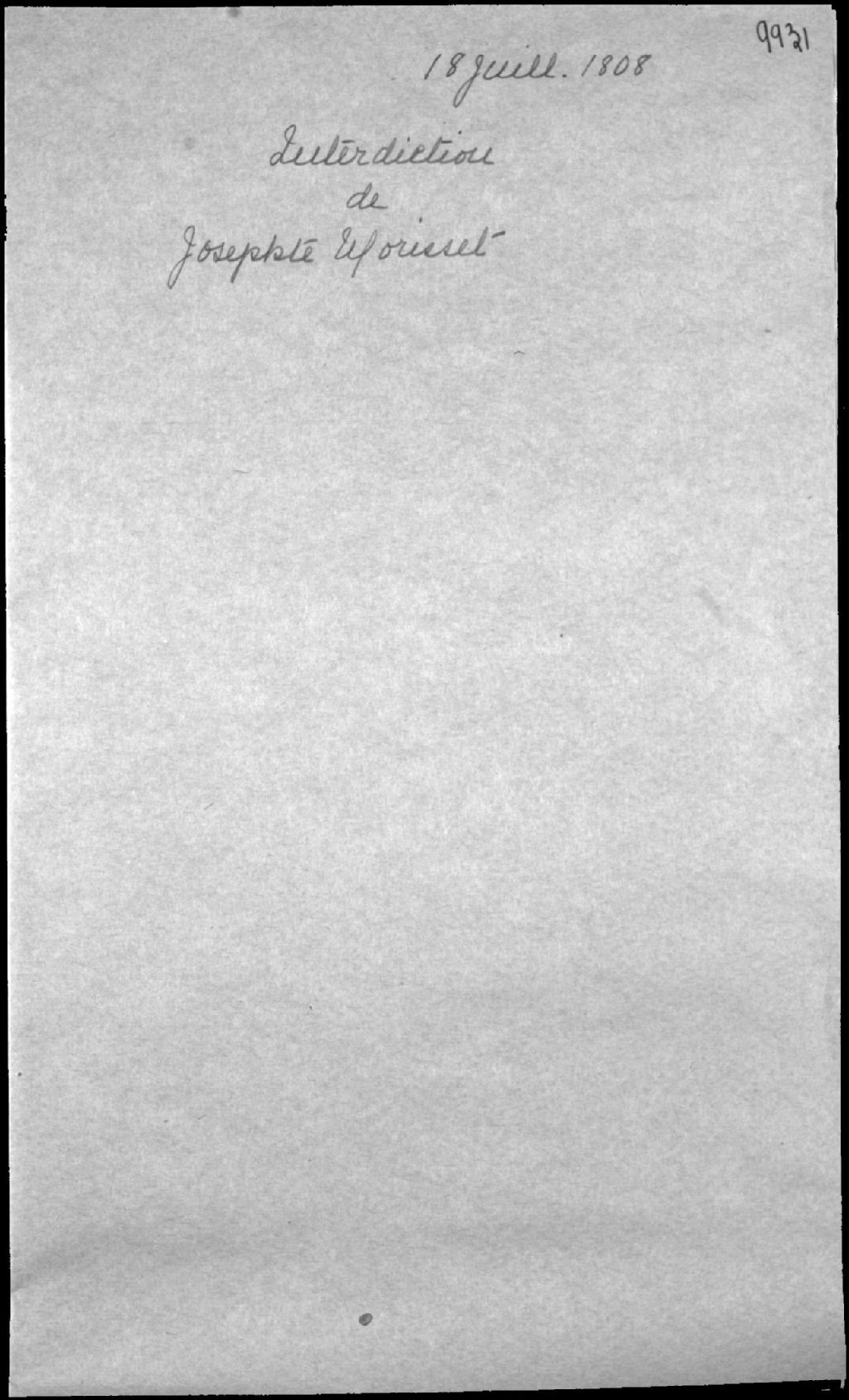 Interdiction d'ester en justice d'une personne démente enfant de feu Pierre Morisset (Morissette), habitant de Cap-Santé, et d'Angélique Pagé